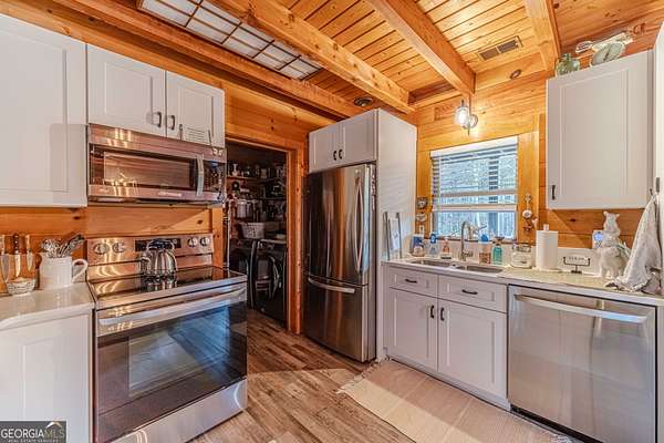 Beamed Ceilings, High Ceilings, Master On Main Level, Vaulted Ceiling(s)