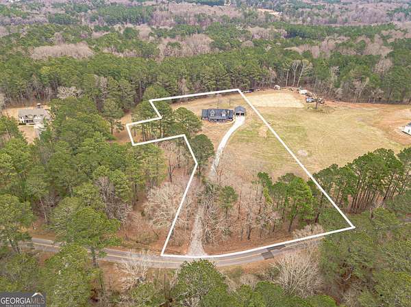 A true cabin-in-the-woods retreat on desirable Stock Road! This meticulously maintained home sits on 2.84 level acres filled with wildlife and natural beauty truly a nature lover's dream. The exterior features a 2-year-old roof and fresh designer paint, along with a welcoming rocking chair front porch where you can relax and watch deer wander through the yard after a long day. Enjoy outdoor living with a private backyard, entertaining patio, and a second-story covered deck perfect for reading or afternoon naps. Additional outdoor highlights include a screened-in side porch, plus a detached oversized garage with plenty of room for vehicles, landscaping equipment, or ATVs. Inside, the home is spotless and well loved, offering 3 bedrooms and 2.5 bathrooms. The spacious family room features a vaulted ceiling, cedar walls, exposed beams, and a stunning white stone fireplace, all complemented by LVP flooring. The owner's suite and second bedroom are conveniently located on the main level. The kitchen has been beautifully upgraded with white shaker-style cabinets, soft-close doors and drawers, solid surface countertops, and stainless-steel appliances. The sink overlooks the backyard, and the counter seating is ideal for guests. Additional spaces include a breakfast area and a separate dining room that comfortably seats 12+, both featuring LVP flooring. A custom staircase with metal accents leads upstairs, offering a dramatic two-story view of the family room. The second level includes a large loft area, full bathroom, and a spacious bedroom currently used as a second owner's suite, complete with a huge walk-in closet. This home is full of thoughtful details beautiful d cor, shiplap bathroom walls, statement light fixtures, cedar accents, exposed ceilings, and an open main level perfect for entertaining. With abundant outdoor space for relaxing and enjoying nature, this home truly has it all. Conveniently located near Grayson, Bethlehem, Loganville, and Monroe, and just minutes from Hwy 316, Hwy 78, The Gateway, and Downtown Monroe. A must-see to truly appreciate schedule your showing today!