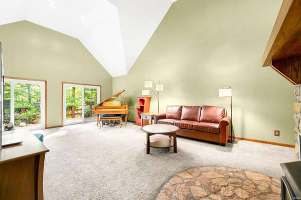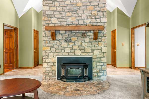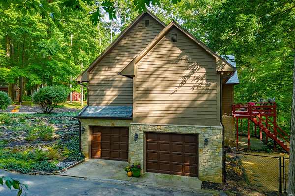 LAKE HOUSE RETREAT! Nestled on nearly 2.5 wooded acres in Morgan County, this custom-built home rests along a scenic 30-acre private lake. Immaculately maintained, it offers an array of inviting spaces both indoors and out. The heart of the home features a spacious kitchen and a vaulted living room highlighted by a stunning floor-to-ceiling stone wood-burning fireplace. Step outside to your private dock and soak in the tranquility of lakefront living. Spa-like master bath provides a serene escape, complete with a luxurious tiled soaking tub and a walk-in shower for everyday convenience. Thoughtful design continues throughout with a laundry room, walk-out basement with your second wood-burning fireplace, ample storage, and abundant outdoor living areas including a porch, patio, deck, balcony, gazebo and two storage buildings. Whether you're enjoying the wooded views from the deck or unwinding by the water's edge, this home offers a perfect balance of comfort, style, and natural beauty.