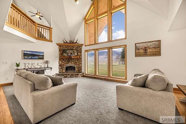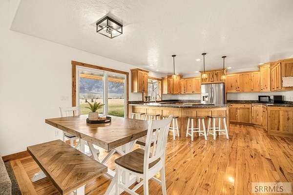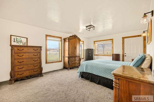 THIS PROPERTY IS CURRENTLY UNDER CONTRACT; THE SELLER IS SEEKING ADDITIONAL OFFERS. This fully updated 3224 square foot, 4-bed, 2.5-bath log-sided home is located just Northeast of the small town of Moore Idaho. The home sits on a whopping 40.06 private acres with stunning views of King Mountain and the Lost River Range. There are no HOA's or CCR's here. The spacious layout includes a master suite with an attached bathroom and numerous interior upgrades: new paint throughout, new carpet, all new doors, trim, and baseboards, a fully remodeled kitchen, updated light fixtures, and multiple renovated bathrooms. Propane forced air heat and central A/C provide year-round comfort. A separate apartment loft above the insulated 2 car garage offers 2 additional bedrooms, 1 full bath, and a kitchen-perfect for guests, rental income, or multi-generational living. The property is fully fenced with a log pole perimeter and includes surface and well water rights, along with wheel lines for efficient irrigation. The 40 X 80 shop on this property is simply unmatched in this area. It features propane heat, a half bath, workout room, tanning space, and two 24 x 80 enclosed storage wings. A private paved driveway ensures peace and privacy in a breathtaking rural setting.