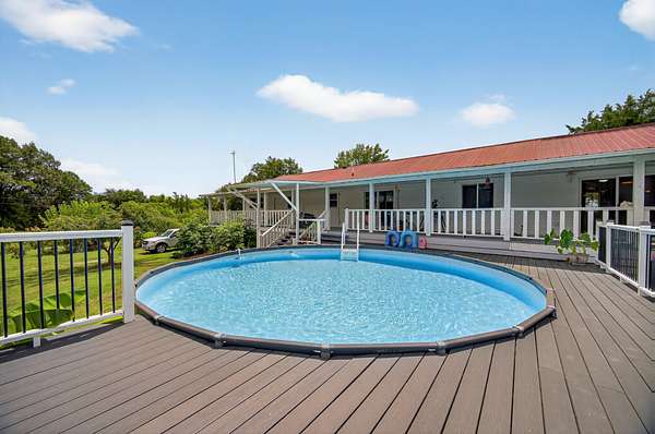 New engineered hardwood floors run throughout the house. A 480 sq ft guest suite was added with a bath and kitchenette, perfect for guests or short-term rental with its own entrance. The addition increased the back porch to a massive 10x77.5 ft. The porch extension to the living space with an awesome view of the back yard and the 24' above ground saltwater pool with new Trex deck. The new kitchen and dining room includes high end appliances, including a custom Viking refrigerator and 6 burner Jennair gas cooktop. Eastern red cedar was harvested from the property and was used to create a beautiful feature wall, a new opening to the living room and frames windows doorways.