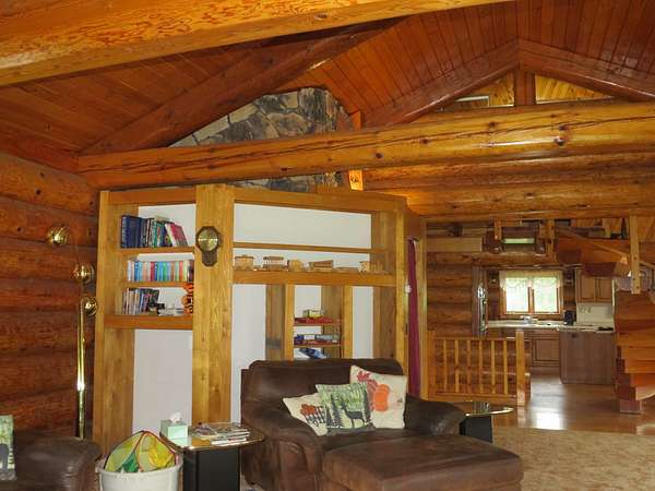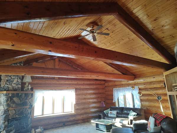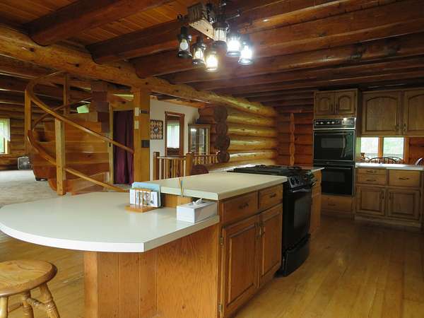 MICHIGAN KOSKI LOG CABIN/HOME FOR SALE - This cabin on a 40 Acre property is located in Covington Township, near the Village of Covington, which is in south-western Baraga County. This Michigan, Upper Peninsula community, along with the neighboring Village of Watton, holds numerous cultural and recreational events throughout the year, and is a Year-Round Outdoor Recreational Haven! The area was first settled by French-Canadian loggers around 1885. Finnish settlers started arriving in 1898, and farming became more prevalent, but logging continued to be an important occupation. Crop and dairy farming, and logging are still done in the area today. - Covington is known for its Historical Museum, and for a beautiful 1900s Art-Deco/Finnish Style church which is open to the public, that was designed by a Chicago Art Institute Professor. - About a mile+ from the property is the Covington Multi-Purpose Building - the large covered pavilion hosts many outdoor activities in the summer months. One of these popular events is an annual July-Daylong Finnish Music Festival which features musicians playing Finnish inspired music, meals, and tours. In the winter the pavilion is a skating/hockey rink. There's also a ski-hill with a tow-rope there, for skiing, sledding, and snowboarding. - Just about 2+ miles to the north-west, via the Plains Road, is access to thousands of acres of Copper Country State Forest Lands, and about 2+ miles to the south are thousands more acres of Copper Country State Forest Lands for walk-in fishing, trapping, and hunting. The area is known for super hunting, with Black bear, Bobcat, Coyote, Raccoon, Red fox, Red squirrel, Ruffed grouse, Varying hare, and Whitetail deer sighted regularly. - Less than a mile to the north is the Kelsey Creek, which flows northward to join the Sturgeon River. Where the river crosses the Plains Road is a great spot to launch a canoe or fishing boat and cast for some fine Trout or Bass. Beautiful Tibbets Falls is just a short distance past this river crossing. (Where the Plains Road takes a sharp right turn, there is a post at this spot where a trail road leads to a parking area at the end of the road and the beginning of a trail to the Falls). There is access to a section of the "North Country National Scenic Trail" also from this site, and few miles further up the road is access to a main North-South Multi-Use State Trail (No. 5) for motorized and non-motorized fun year-round - Biking, Hiking, Horseback riding, off-Roading, Cross-Country Skiing, and Snowmobiling! Two miles to the east is 622-Acre, 7-Foot Deep, Vermilac Lake for some great fishing for planted Walleyes, and naturally occurring Northern pike, Perch, Sunfish, and Crappies. The Baraga Plains Waterfowl Management Area, Big Lake Campground, and the Baraga Plains ATV Trail are also local area outdoor points of interest. - The Custom Koski Log Cabin was built in 1985. You enter the home off of an Open Deck that wraps around three sides of the structure. A Main Floor Front Door Foyer is flanked on one side by a 23 x 24 Great Room with a high open, beamed ceiling. It features full log interior log walls, with Birdseye and Cherry window trimming. A stone fireplace is in one corner, and across there are built-in bookshelves. At the opposite side of the Foyer is access to a large 12x20 Kitchen. A large central Island has a countertop with built-in cook stove, lower cabinetry, and an area for casual dining with a view of the outdoors. Along the outer wall are additional custom cabinets, and a countertop with a sink placed under a window that provides a view of the fields outside. The counter continues along a wall where the built-in oven, and a pass through to the spacious 11x14 Dining Room. A 6x8 Half-Bath is located along a back Hallway which has a Door to the Back Deck, and a Stairway to the Lower Level. The Upper Level is reached by a Custom Log Spiral Staircase. The Upper Level has a landing that could be used for a small office/sewing/crafting area, a 12x15 Bedroom, and a 10x12 Bathroom with a standalone shower and jacuzzi style tub. The Lower Level has a 16x32 Recreation Room, with Walk-Out Doors to the back yard, and birds-eye wood Bar. A Central Hallway leads you to a 10x14 Bedroom, a 10x10 Bedroom, an 8x10 Bathroom with a jetted bath with shower, and a large Laundry/Mechanical Room. There is in-floor heating in this Lower Level. If you are seeking a Log Home/Cabin for year-round adventures in the Upper Peninsula, Check This One Out!