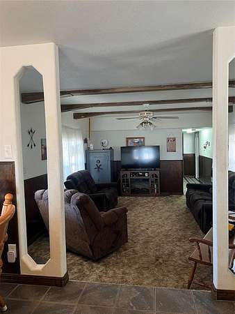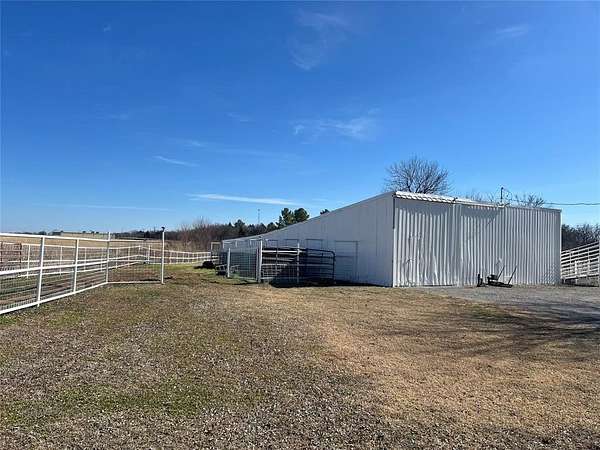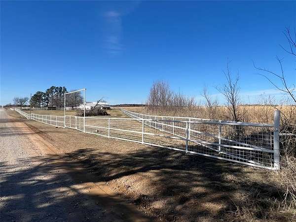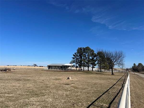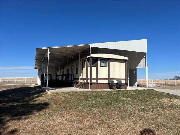 Est $1,458/moTurnkey acreage property ready for livestock and country living just outside Agra. This 3.7+ acre setup is fully equipped with pipe fencing around the entire perimeter, barn and stables, a stocked pond, lagoon runoff system, two sheds, and an inground storm shelter. A rare combination for this size tract! The two bedroom, 1 bathroom mobile home sits on a slab and features front and back decks and a metal pole barn/carport structure covering the home, offering added protection and longevity. The home is in good condition with functional updates, allowing comfortable living while you enjoy the land.