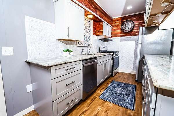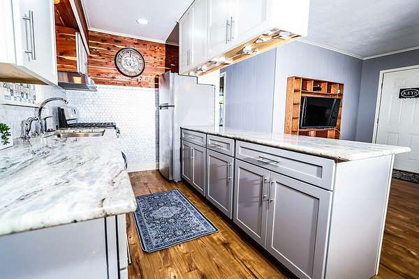 Welcome to your perfect lake retreat near Sam Rayburn! This beautifully renovated 2-bedroom, 1-bath home offers 1,048 sq ft of cozy, inviting living space designed for comfort and style. Step inside to a completely remodeled kitchen featuring stunning granite countertops, stainless steel appliances and modern finishes. The home has been updated with new central heat and air, along with energy-efficient double-pane windows for year-round comfort. Situated on 1.9 acres of cleared, usable land, this property offers endless possibilities. Whether you're looking for space to build a shop, park your boat, or simply enjoy the outdoors, you'll have the room to do it all. An 8x12 storage shed is already in place for added convenience. Located in a quiet, peaceful neighborhood, you can enjoy a short walk to the water or take a quick one-mile drive to Townsend Boat Ramp for easy lake access. This well-maintained home is ideal as a full-time residence, weekend getaway, or investment property.