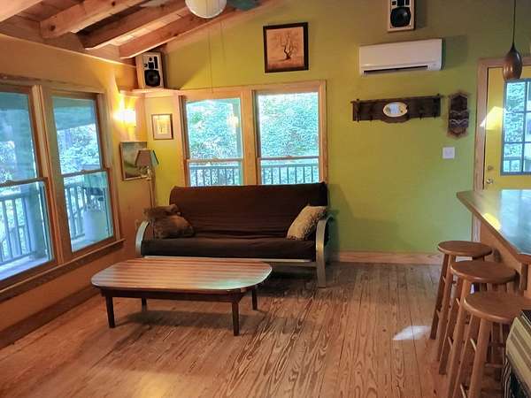 From Franklin, take either NC 28 or Needmore Road to US 74 West and turn LEFT. Turn RIGHT on Euchella Branch Rd. There are no listing signs and no drive bys please.