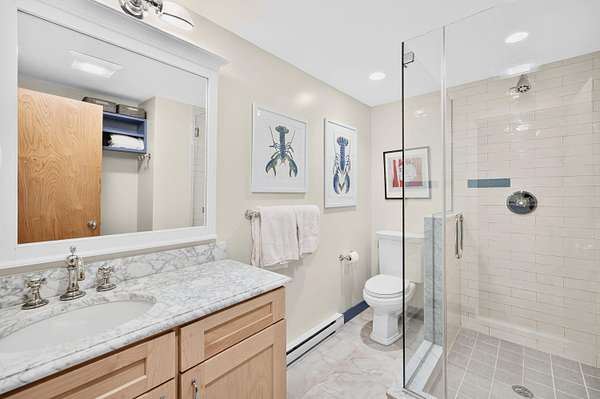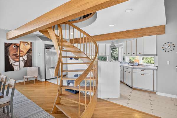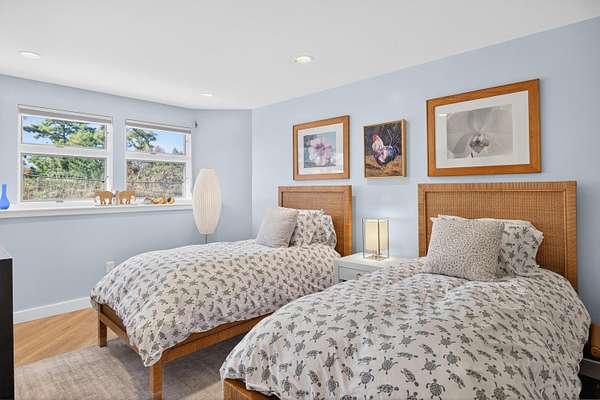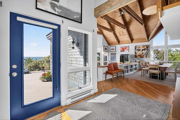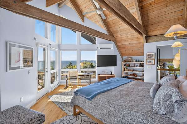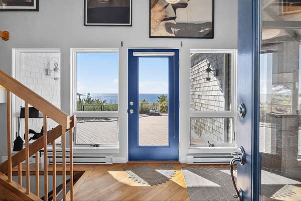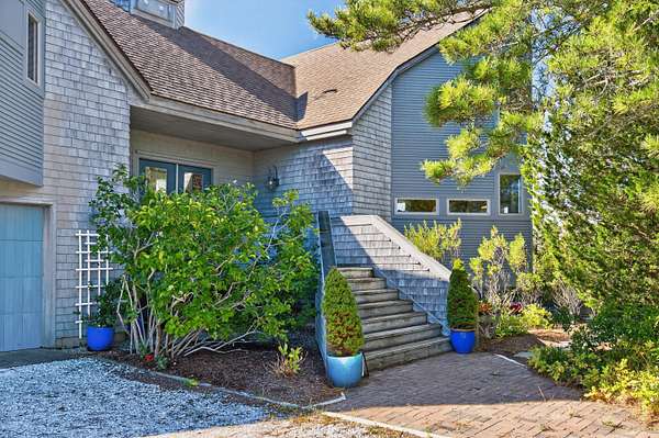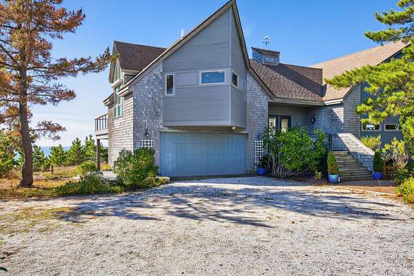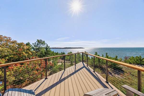 Set at the far end of King Phillip Road where peace and privacy abound, this cherished waterfront home offers private steps to the bay and beach, stunning, elevated and far reaching waterviews and thoughtful and beautifully curated, year round contemporary living spaces. Nothing is missing here, from the generous 1.51 acre bayfront parcel to the dramatic open living area, spacious primary suite, private decks overlooking the bay and lower level offering 2 newly redone bedrooms and baths, in this home ease and comfort abound. With beach at your doorstep, sunsets over the bay, surrounding Cape pines and association tennis and added beach options right up the road, this beautiful property offers a rare opportunity to start this summer, and every season, in a timeless Field Point location.