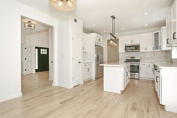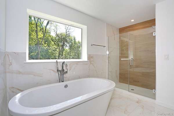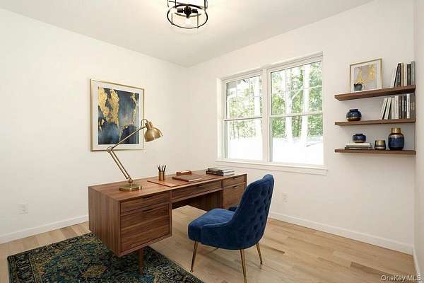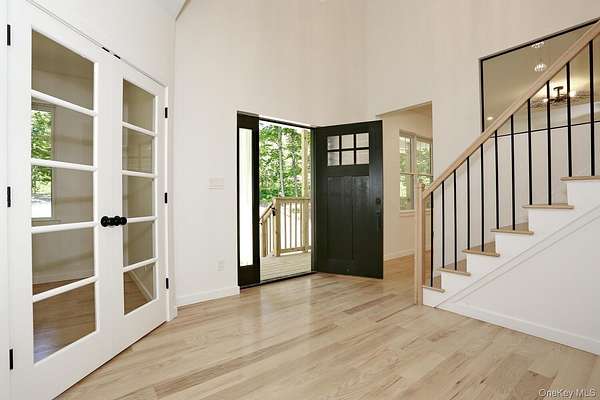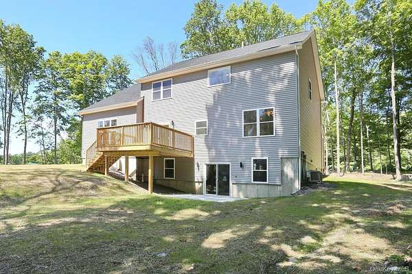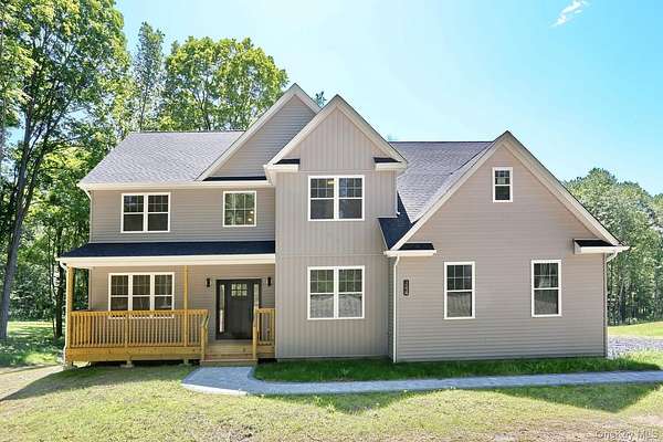 Secure Your Advantage, Luxury, Land, and Location All in One Powerful Offering. Welcome to 344 N. Ohioville, a striking new-construction Colonial set on 4.3+ private wooded acres in the heart of New Paltz. Delivering over 2,800 sq. ft. of refined living plus a 1,380 sq. ft. walk-out lower level ready for your vision, this home is built for buyers who value space, efficiency, and elevated design. Step inside to a grand, light filled interior featuring radiant-heated 48x8 stone-tile floors, soaring ceilings, and a dramatic floor-to-ceiling fireplace anchoring the two-story family room. Expansive windows flood the space with natural light, while the chef's kitchen impresses with quartz countertops, premium stainless steel appliances, abundant cabinetry, and a large island with seating, seamlessly connected to the dinette and formal dining area. A private study with French doors and a designer powder room complete the main level with purpose and sophistication. Upstairs, rich oak hardwood floors lead to a serene primary suite with tray ceilings, a spa like bath with soaking tub, glass enclosed shower, double vanity, and a spacious walk-in closet. Three additional bedrooms share a beautifully appointed full bath, alongside a versatile bonus room and a convenient laundry area with slop sink. The architectural guardrail hallway overlooks the dramatic living space below, adding both openness and visual impact. The walk-out basement, complete with large windows is ready to be finished to your needs, including plumbing in place for a future full bathroom, offers endless potential for future living or recreation space. Enjoy year round comfort with dual high efficiency HVAC systems, each dedicated to its own level. The home is Energy Star compliant and certified, featuring full foam roof insulation for superior energy efficiency, comfort, and long-term savings. Outdoor living is just as inviting, with a covered front porch and a rear deck with stairs leading to your private, nature filled backyard. Located just minutes from downtown New Paltz, I-87, the Empire State Trail, Mohonk Preserve, and Minnewaska State Park, this is Hudson Valley living at its finest, modern, efficient, and built to impress. Schedule your private showing today.