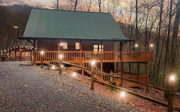 BOY, DO I HAVE THE CABIN FOR YOU! Nestled on a mountaintop, surrounded by nature, and hugged by the trees you will find the perfect mountain cabin. Tucked behind a private gate, your rustic paradise offers hardwood floors, walk-in pantry, open-concept dining & living room. The roomy owner suite features a walk-out balcony over-looking the wooded acreage with seasonal mountain views. The terrace level gives you the laundry room, den, living room, bedroom, & a walk-out to the lower level back porch. Outdoor entertainment abounds with ample wrap around porch sitting. an entertainment porch equipped with a fireplace, firepit, & outbuilding. Sit on the bed-swing and listen to the noisy creek below, watch your favorite sports team, or movie. This could be your slice of mountain cabin heaven. PRIVATE, PRIVATE, PRIVATE!!! Please note there is a room in the lower level being used as a 4th bedroom, but not classified as a bedroom.