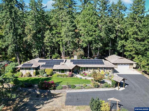 Est $5,956/moMotivated Seller! Spacious single story home with NEW updated kitchen counters & tile. All situated on 5 peaceful acres in a natural setting. Close to shopping & downtown Corvallis. Entire home completely remodeled in 2011 w/ large primary suite addition done in 2011, primary suite has 10-foot ceiling, spacious bathrm with curbless tile shower and large walk-in closet. Plus junior suite w/ attached bathrm & tile shower. Covered back patio, 4-car garage, RV garage, shop & greenhouse. LB is related to seller. Dual living potential. Or possibly room to add an ADU. Buyer to due diligence. Motivated Sellers, Bring Offers!!!