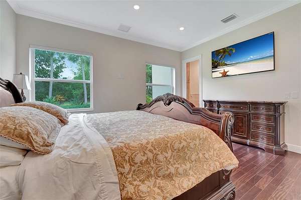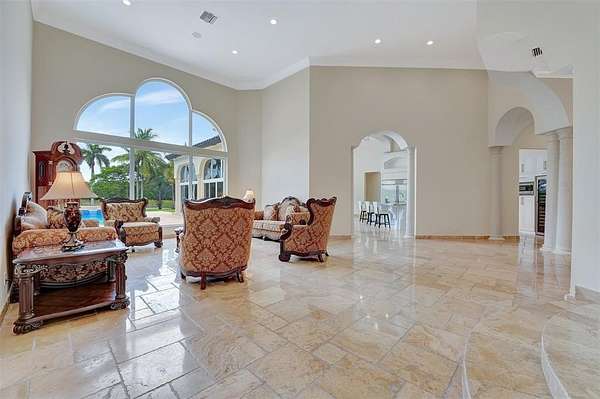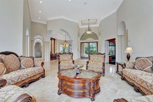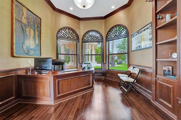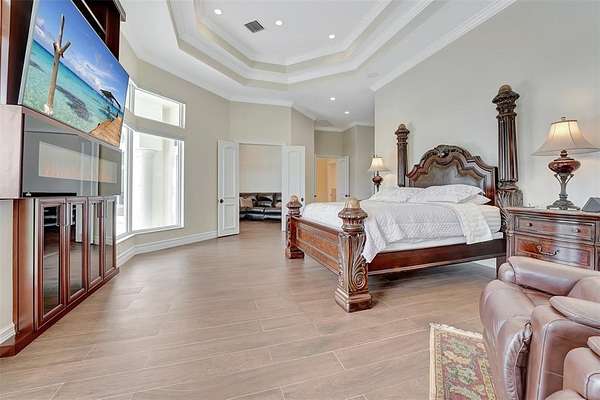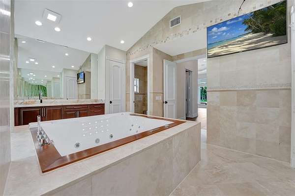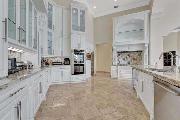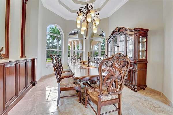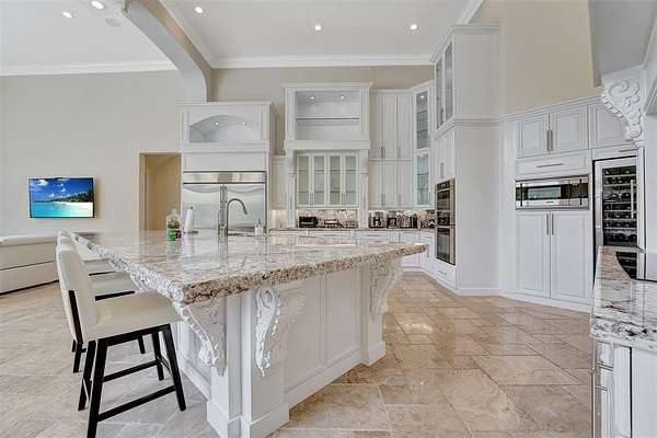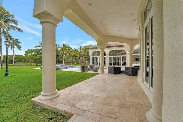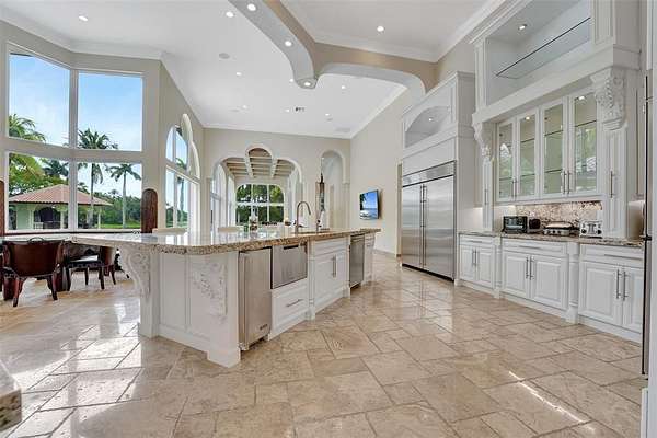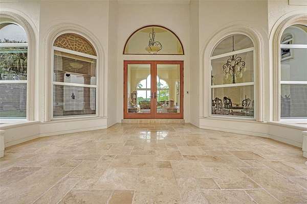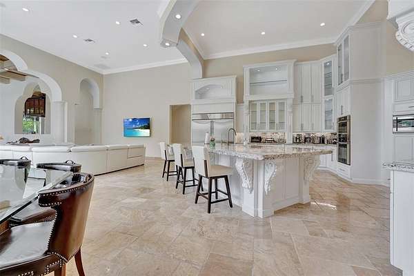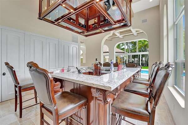 Exquisite luxury home within prestigious Windmill Ranch Estates. Grand entrance into the beautifully detailed & recently completed 7-figure remodel inside and out, w/ expansive lake views, lush landscaping, resort pool, & mature palm trees adorn this property. Unique masterpiece has fine craftsmanship, exquisite finishes, high volume ceilings, Jerusalem Stone, real wood floors, private office, outfitted bar, & formal dining. Gourmet kitchen, granite tops, custom cabinetry, massive center island & breakfast area. Lavish primary suite with large walk-in closets & resort style master bath w/ oversized Jacuzzi Tub, dual showers with full Steam. Cabana bath w/spa sauna & shower. Fully equipped Summer kitchen gazebo seats 20+. Oversized 3 car garage with marble floors, & expansive driveway.