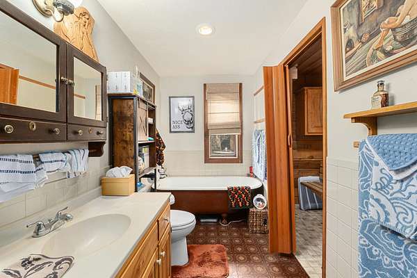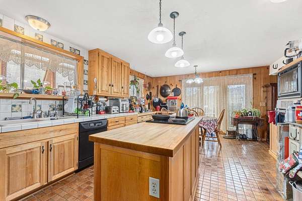 - Ceiling Fans, Island, Tile Floors, Vaulted Ceilings, Wood Floors