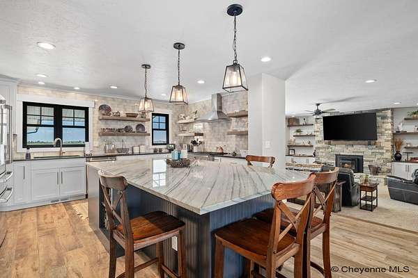 Newly Remodeled close in with no covenants! Amazing quality throughout Koch custom cabinets with 108" center quartzite island. Richly stained gorgeous adler trim entry and custom doors plus stunning tile throughout. Completely finished with hand trawl texture, oversized living room, kitchen & dining absolutely perfect for gathering and entertaining. Cafe Appliance Suite with Dual Fuel Range. Custom pellet stove, central heat & A/C, OD hot water, Culligan softener and reverse osmosis water filtration system, perimeter drain, black wood clad Windsor casement windows, entire interior spray foamed, natural stone fireplace and sunroom. Fully maintenance-free brick exterior, ABC seamless gutters, fascia, accent siding, timber tech deck, sport court, 16 sprinkler zones encompass all the mature trees and privacy. Custom wood and corrugated metal fencing around yard, irrigated vegetable garden with stamped concrete surround. Fully finished & spray foam insulated 10+ car Quonset w/ 13' overhead door. Dry hay storage w/3 stall loafing shed and full-service RV hook-up w/2 large grain silos. Every system is upgraded! Easy to love with county-maintained access, no covenants and a wonderfully beautiful setting. Farm living at it's finest!