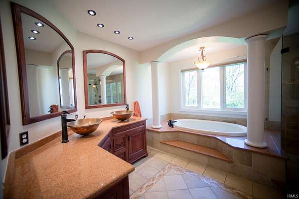 - Alarm System-Sec. Cameras, Alarm System-Security, Attic Storage, Attic-walk-Up, Bar, Basketball Goal, Cable Available, Cable Ready, Ceiling Fan(s), Ceiling-9+, Central Vacuum System, Closet(s) Walk-In, Countertops-Solid Surf, Crown Molding, Custom Cabinetry, Detector-Carbon Monoxide, Detector-Smoke, Dishwasher, Disposal, Dryer Hook Up Electric, Garage Door Opener, Great Room, Guest Quarters, Kitchen Island, Landscaped, Main Floor Laundry, Main Level Bedroom Suite, Open Floor Plan, Pool Equipment, Range/Oven Hook Up Elec, Refrigerator, Skylight(s), Sump Pump, Tub and Separate Shower, Tub/Shower Combination, Utility Sink, Washer Hook-Up, Water Heater Electric, Water Softener-Owned, Wet Bar, Window Treatments