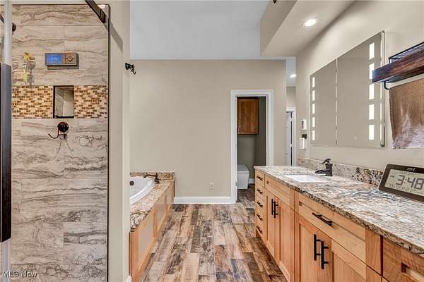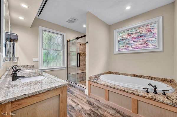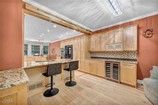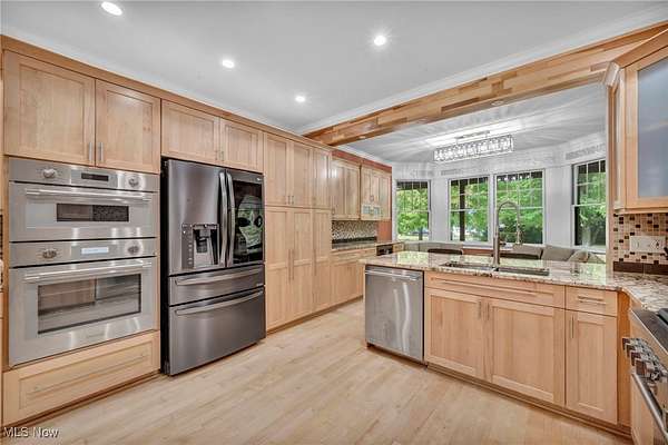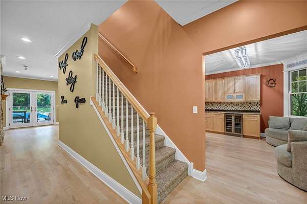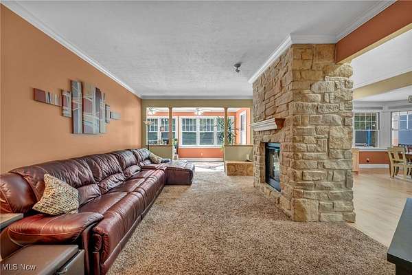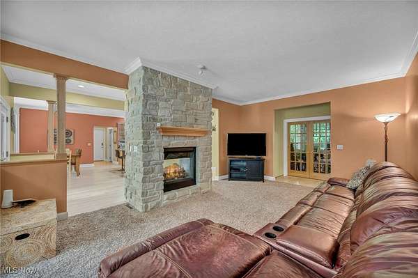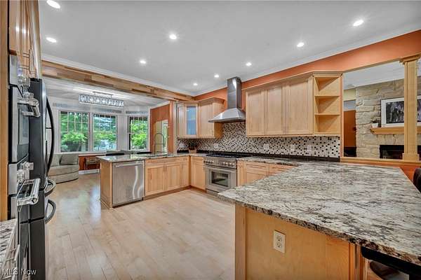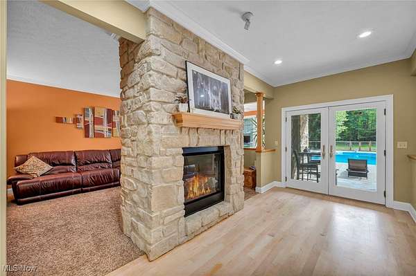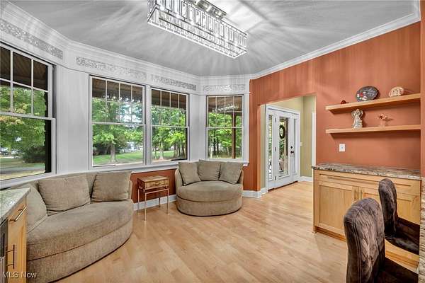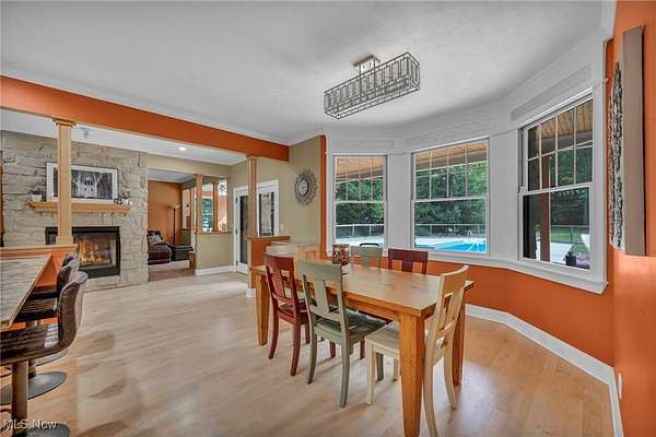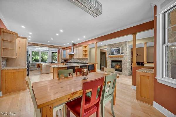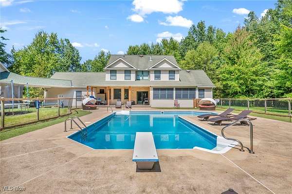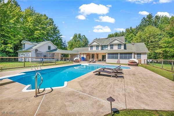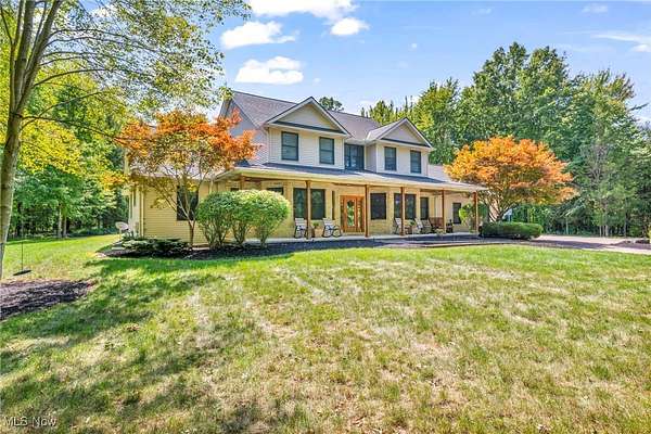 Welcome to 34445 Detroit Road, a stunning 5 bedroom, 3.5 bath home set on nearly 5 private acres in Avon. This residence combines modern updates with serene outdoor living, featuring the impressive completely remodeled kitchen designed for both style and function. First floor primary suite includes a remodeled bath with heated flooring. The living room with a dual sided gas fire place, morning room, office space with French doors, dining room, large mudroom, laundry and 1/2 bath complete the 1st floor. Upstairs you will find 4 generously sized bedrooms and 2 full bathrooms. The basement is finished with a large recreational room and 2 additional rooms, perfect for an exercise room or additional play area. Step outside to your own retreat with an in-ground heated pool surrounded by low-maintenance turf, perfect for entertaining or relaxing. The property also offers exceptional garage space (4 total) with a detached garage featuring a finished bonus room above, complete with heating and cooling-ideal for a home office, studio, or guest suite. Secluded grounds and a private setting, this home is a unique find offering both luxury and versatility & is a rare opportunity to experience Avon living at its finest!