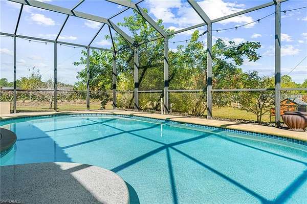 2.58-ACRE ESTATE - FULLY FENCED WITH ELECTRIC GATE & POOL! This private single-family residence in Golden Gate Estates boasts 2,752 sq. ft. of living space, featuring 4 bedrooms, 3 full bathrooms, a pool and lanai, and a two-car garage. Situated on a beautifully cleared 2.58-acre lot, the property offers abundant potential to add a guest house, workshop, or other structures. An electric entry gate and LONG PAVED DRIVEWAY leads to the fully fenced property, delivering privacy, security, and exceptional curb appeal. Inside, the home features impressive 10-12 ft ceilings, FRESHLY PAINTED INTERIOR, plantation shutters, UPDATED LIGHT FIXTURES and fans, and a CUSTOM ACCENT WALL. New LUXURY VINYL PLANK FLOORING has been installed in all bedrooms-no carpet anywhere! The spacious kitchen is designed for both functionality and entertaining, showcasing GRANITE COUNTERTOPS throughout, new KitchenAid Professional STAINLESS STEEL APPLIANCES, a large walk-in pantry, formal dining room, breakfast nook, and an eat-in bar. The expansive primary suite offers sliding glass doors opening to the extended lanai and pool area, a large walk-in closet, dual vanities, soaking tub, separate shower, and a generous linen closet. Secondary bedrooms are spacious, with a convenient Jack-and-Jill bathroom featuring a granite vanity and tub/shower combination. A FULL POOL BATH provides direct access to the lanai, ideal for entertaining. Outdoor living is equally impressive with a heated pool and screened lanai, enhanced by an automatic hurricane screen for added protection. Major updates include a NEW WATER HEATER, accordion shutters, well installed in 2018, HVAC air handler (2022), TILE ROOF(2018), and UPDATED WATER SYSTEM (2020). Expansive and versatile, the property includes a chicken coop, freedom from HOA restrictions, and the rare ability to enjoy space and flexibility in Naples. Located near the brand-new Publix on Oil Well Road, the growing Randall Curve retail center, top-rated Naples public schools, and the 150-acre Big Corkscrew Island Regional Park, it offers a perfect balance of privacy and convenience. THIS PROPERTY QUALIFIES FOR A 1% LENDER INCENTIVE IF USING PREFERRED LENDER, INQUIRE FOR MORE DETAILS** Some renderings that showcase furniture have been virtually staged