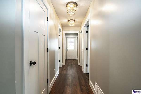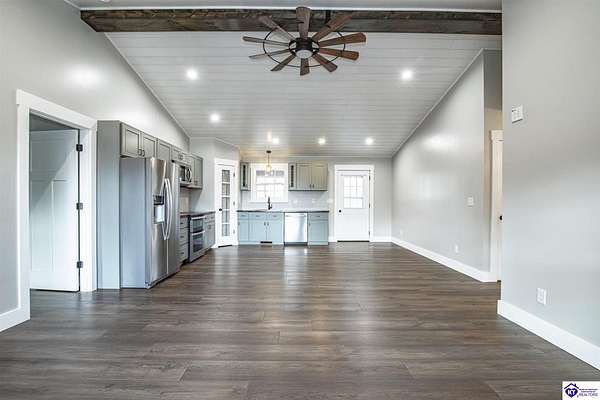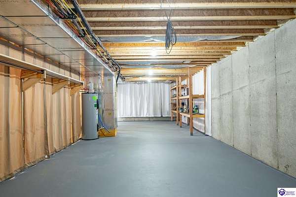 MOVE IN READY! A hunter's dream! Welcome to this beautiful 3 bedroom, 2 bath ranch home built in 2024 offering peaceful country living on 9.72 wooded acres with a picturesque creek running through the property. Property has as open food plot area which is perfect for hunting the game you desire. Enjoy the charm of a covered front porch and a huge covered concrete back porch, perfect for relaxing and taking in the natural surroundings. Inside, you'll find luxury LVP flooring throughout and a convenient washer/dryer combo that's only 1 1/2 years old. The home also features a full unfinished basement with studded walls--ready for you to customize to your liking. Additional highlights include a 2-car attached covered carport, a detached 26x30 garage, and a partially fenced backyard. The like-new hot tub, only used three seasons, remains with the property for your enjoyment. Located approx. 25 minutes to Campbellsville, 15 minutes to Hodgenville, and 30 minutes to Elizabethtown. This property offers the perfect blend of comfort, privacy, and nature--ideal for those seeking a quiet country retreat with modern conveniences.