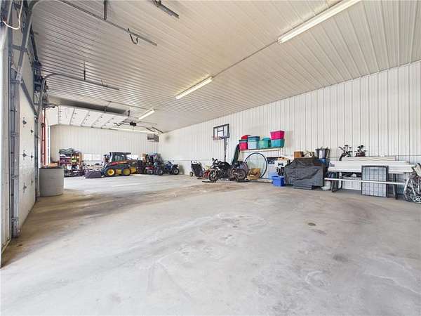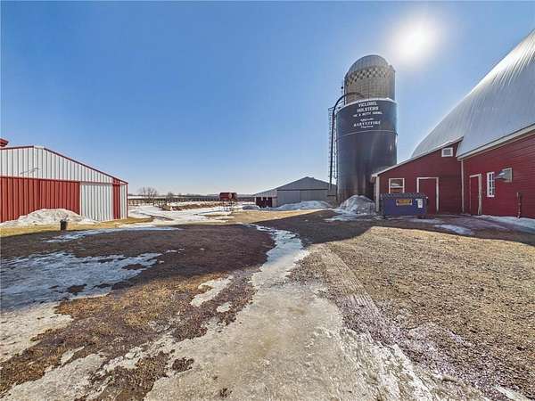 Well-kept hobby farm on 45 acres featuring 18 acres of prime tillable land and 10 acres of meadow. The home is conveniently located just 4 miles off I-94. The home includes a large 2009 addition with vaulted ceilings, finished basement, and all living facilities on the main level. The outbuildings are all maintenance-free with steel exteriors. All buildings have power and are mostly cemented. Heated shop is fully lined in steel, and is great for family get-togethers. The property is exceptionally clean and well maintained throughout. Land adjoins a walking trail, adding additional recreational appeal. Recent updates include a new roof in 2020, home has a 100-gallon water heater, and 640 Amp electrical panel. A very clean, turnkey farm setup ready for hobby use, storage rental, and many other options!