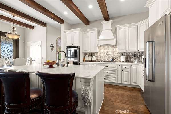 Inside, you'll find spacious living areas, modern finishes and thoughtful upgrades throughout. The upgraded kitchen features high end Kitchen Aid appliances and finishes. Custom cabinetry. Open floor plan off kitchen to main living area with fireplace and faux beamed ceiling The primary retreat features a fireplace, exterior entry and the ensuite bathroom offers separate shower and soaking tub with ample closet space. Large formal dining room and oversized living room with fireplace. Step outside to your outdoor kitchen oasis, complete with a built-in BBQ, smoker and wood-fired pizza oven and refrigerator -- perfect for entertaining under the stars. Whether you're lounging poolside, enjoying the sunsets, or hosting gatherings, this home offers peaceful privacy without sacrificing convenience -- just minutes from the freeway for an easy commute. Luxury. Privacy. Location. This is California living at its finest. Come for a visit. Stay for a lifetime. Welcome home!