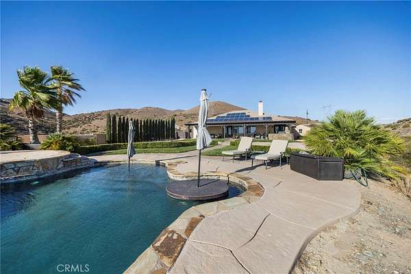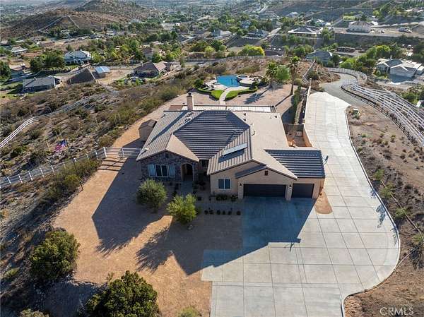 At the end of a long, gated driveway, perched above the neighborhood, this beautifully upgraded home boasts a truly elevated lifestyle. Enjoy an unmatched location, a resort-style infinity pool, paid solar system, solar pool water heater and a fully landscaped property designed for comfort and elegance. The exterior of the house features a custom smooth plaster finish. Room for a large shop with 50 amp power service for RV hookup.