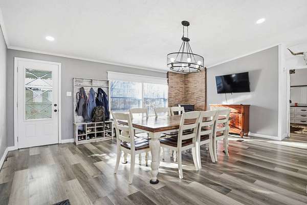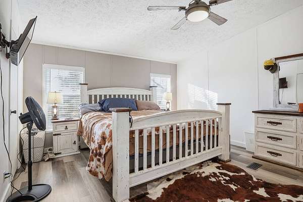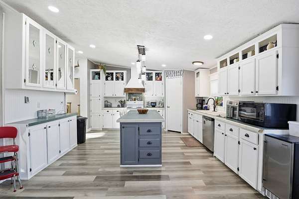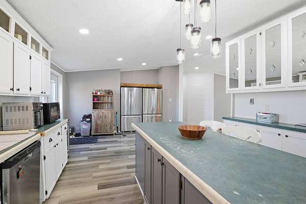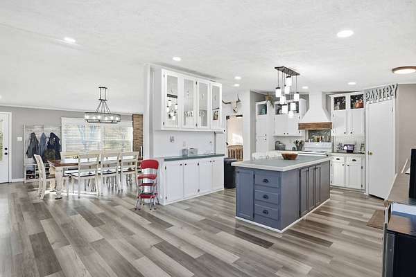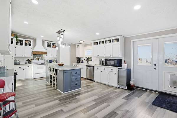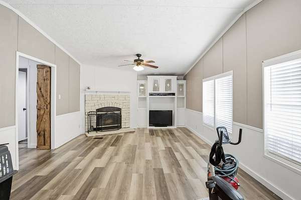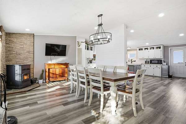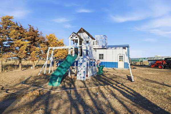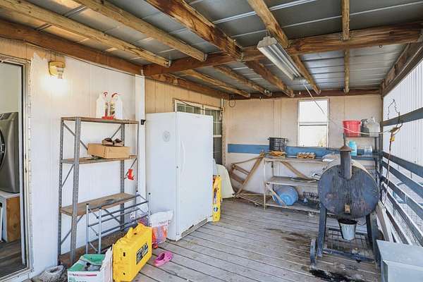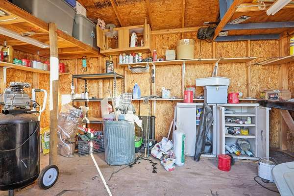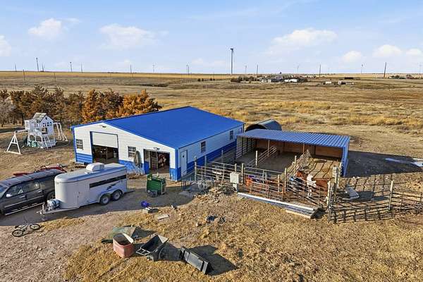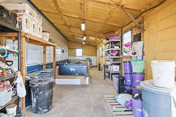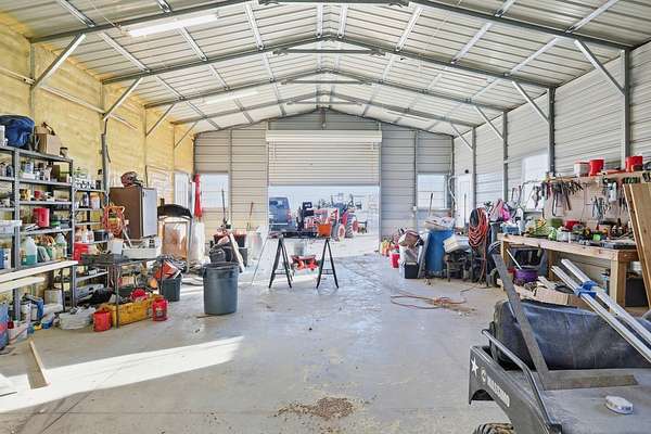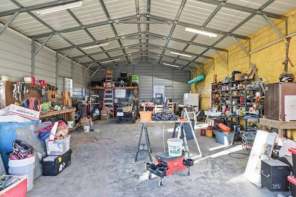 Spacious country living on 32.18 acres! This beautiful 4 bedroom, 2 bath home offers a large open floor plan perfect for entertaining and everyday comfort. The inviting living room features a cozy fireplace, while the front dining room includes a pellet stove capable of heating the entire home-ideal for those chilly Oklahoma nights. The split-bedroom layout provides privacy with a separate master suite featuring an ensuite bath. Down the hall, you'll find three additional bedrooms and a built-in desk area, perfect for a home office or homework station. The kitchen is generously sized and comes equipped with two refrigerators, offering plenty of storage for large families or hosting guests. Additional features include motion-sensor lighting in the laundry room and hallway bathroom for added convenience. Outside, enjoy endless possibilities with an 8x10 shed, a massive 24x45 shop built to impress with a 140 MPH + 30 PSF rating, electric, and a 10-foot overhead door. The barn includes three 40x10 pens, each with water, making this property ready for livestock or hobby farming. If you've been looking for space, functionality, and country charm-this one checks every box!