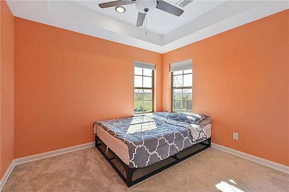 Enjoy peace and privacy on this 30 acre AG exempt property with NO RESTRICTIONS. Excellent location centrally located between Austin, Waco and Bryan/College Station. The beautiful stone home has 3 bedrooms, 2 1/2 bathrooms PLUS a large flex-space room. Oversized, abundant windows allow gorgeous sunlight and scenic views. Tile floors throughout the main areas. The kitchen features granite counters, custom cabinets, gas stove, pantry space, breakfast nook and formal dining. The living area has a beautiful fireplace and tall ceilings. The bathrooms feature gorgeous tiled tub/showers and granite counters. The primary bathroom has separate shower and soaker tub, double sinks and a large walk-in closet. The property is fenced and cross fenced with TWO ponds. Unlimited possibilities on this quiet acreage!