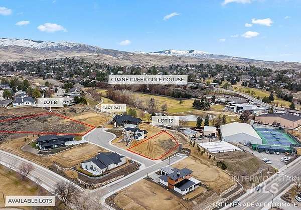 This exceptional new development borders the iconic Crane Creek Country Club in the highly sought-after Highlands. Choose from one of our few remaining lots and bring your own builder to create your dream home. Experience the premier Highlands lifestyle with direct cart path access connecting the community to Crane Creek-perfect for golf enthusiasts! The Highlands offers something for everyone: easy access to foothill trails, top-rated schools, a stunning golf course, and a quick commute to downtown. Nestled against the foothills, it provides unmatched access to Bogus Basin Ski Resort and the Ridge to Rivers Trail System, ideal for mountain biking, hiking, walking, and running. Crane Creek Country Club offers a fully renovated 18-hole golf course set in a scenic canyon and recognized for its environmental stewardship. Members enjoy top-tier amenities, including outdoor and indoor tennis courts, a saline pool with poolside dining, a fitness center, an elegant clubhouse, and a new fitness club.