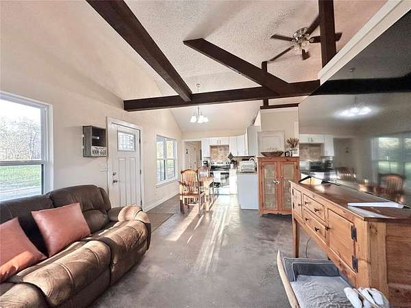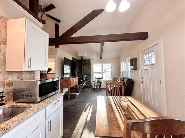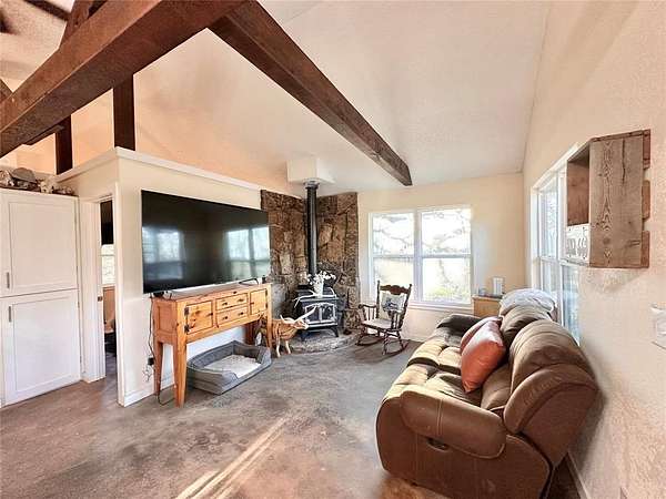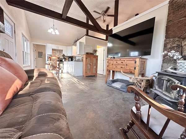 Escape to your own private retreat with this hunter's dream cabin nestled on approximately 20 acres (MOL) of secluded, scenic land. Surrounded by stunning views and abundant wildlife, this property offers the perfect blend of peaceful country living and convenience-just 25 minutes to Norman and under 40 minutes to Tinker Air Force Base with easy highway access. This beautifully renovated rustic cabin is move-in ready and ideal for those seeking a weekend getaway, hunting paradise, or a place to establish your dream homestead. With plenty of room to expand and customize, the possibilities here are truly endless. Recent upgrades provide peace of mind and modern comfort, including a new roof, new windows and exterior doors, and freshly sealed and stained woodwork that enhances the home's natural charm. Inside, you'll find durable stained concrete floors throughout, wood burning stove and a fully updated kitchen featuring new cabinetry, granite countertops, a new range/oven, and updated fixtures. The bathroom has been completely refreshed with a new tub/shower surround, vanity, lighting, and fixtures. Additional improvements include new paint throughout, a new hot water heater, and energy-efficient, separately zoned smart mini-split HVAC systems for year-round comfort. The property is equipped with a private well and septic system, making it fully self-sufficient and ready for its next owner. Whether you're looking to escape the hustle and bustle, enjoy prime hunting land, or build out your future dream property, this one-of-a-kind acreage is a rare find you won't want to miss.