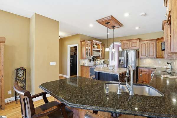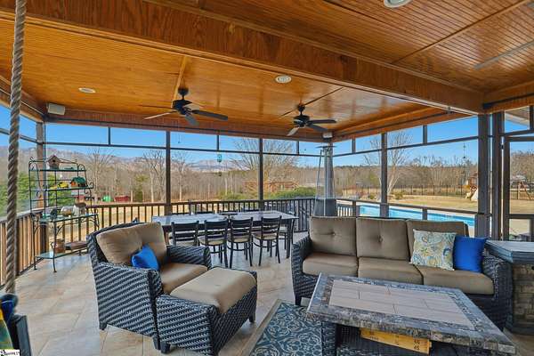 Views, location, no HOA, inground pool and a magnificent home...Need we say more? Located at 3449 SC Hwy 414 in Landrum,SC this amazing property gives SO MUCH more. First, enjoy outdoor living at it's finest on your 2 acres (and the opportunity to purchase additional acreage, if desired). This 2 level residence with a full finished basement, boasts a wrap around rocking chair front porch. At the back of the home is an incredible screened in back porch allowing prime views of an amazing pool and patio area as well as the pièce de résistance: a view of Glassy Mountain that looks close enough to touch! (Back porch swing and furniture will not convey with home.) Entering the front door, the staircase soars above you and you get your first sight of that amazing mountain. The lovely living room has a wall of windows to give you a 2 story, unfettered view that changes with every season and grows more beautiful everyday. The rest of the main floor provides an owner's suite with a full bath (separate shower and tub) and dual vanities. Completing this level is another bedroom/office as well as a large kitchen, breakfast nook, dining room and half bath putting all the necessary rooms in this easily accessible area. Two staircases provide access to the upstairs where 3 generously sized bedrooms and 2 baths are located. Additionally, a large bonus room, and another study are located here. A panoramic loft area is located outside the bedrooms providing superb views of Glassy Mountain as well as the Living Room below it! Continuing the tour of this massive house takes you to a completely finished basement. Another fireplace here in the second living area can be utilized however the owner would like...think game room or media room. There is another bedroom in this basement area as well as a full bath. This area could be utilized as a second living space with its kitchenette. There are also several storage rooms here available for all your necessities. Additionally, a large walk out storage area leads to a roofed area perfect for boat storage or your latest project. Don't let this amazing showplace get away from you. Call Kathy Harrison, Epique Realty for your showing today!