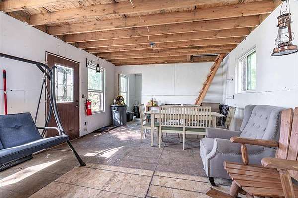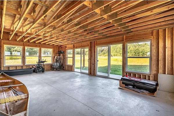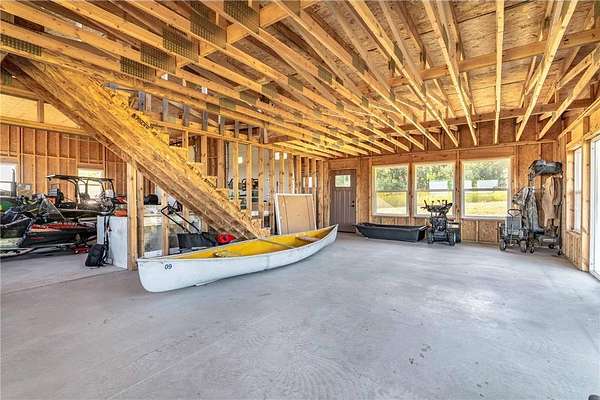 A beautifully finished brand-new shouse sits on the property--perfect for storing all your lake toys, with an unfinished interior shell ready for your personal design and finishing touches. Tucked into the woods, you'll also find a two-story bunkhouse with a rustic, fun vibe--complete with a wood-burning stove, loft with four rough bunk beds, and space to sleep up to eight. Primitive and cozy, it's the perfect spot for a weekend getaway.