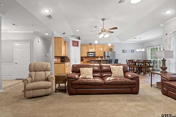 - Blinds, Ceiling Fan, Satellite Dish, Security Lighting, Security System, Smoke Alarm, Vaulted Ceilings