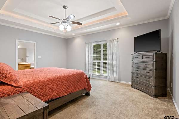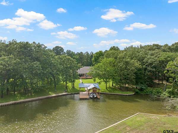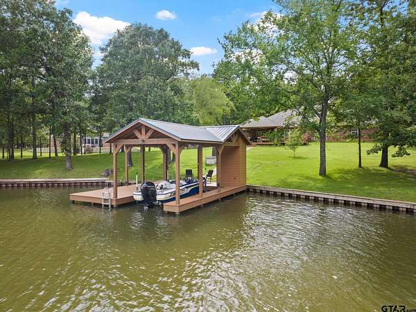 Nestled in a tranquil cove on Lake Bob Sandlin within the coveted Mariner's Retreat subdivision, this luxury lake house is an unparalleled retreat for those seeking a year-round residence or a vacation getaway. Boasting a spacious open floor plan spanning over 2,600 square feet, this exquisite property is designed for effortless entertaining and relaxation. The gourmet eat-in kitchen features a central island with seating, high-end stainless steel appliances, and abundant cabinetry. The expansive primary suite offers a luxurious ensuite bath complete with a rejuvenating jetted tub, dual sinks, and a custom walk-in closet. Three guest rooms share a generously appointed hall bath, with an additional half bath for added convenience. Outside, a stunning boat house with a watercraft lift, tanning deck, and lakeside hangout spot beckons water enthusiasts. Cap off your days by unwinding on the back porch, equipped with a misting system for a bug-free evening as you soak in the picturesque sunset views over Lake Bob Sandlin.