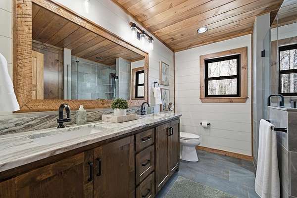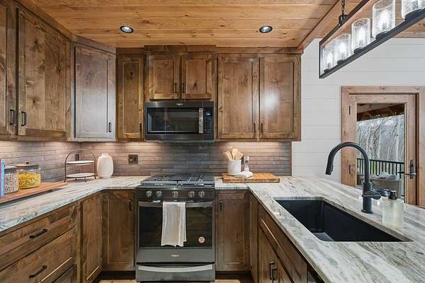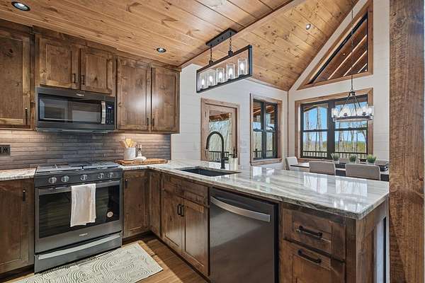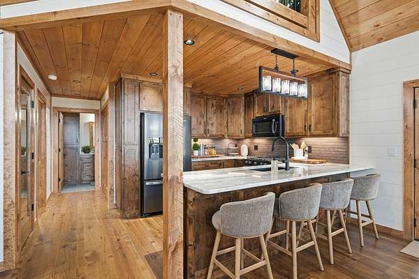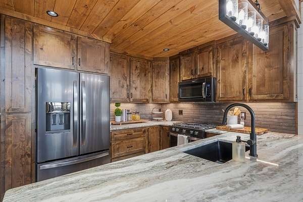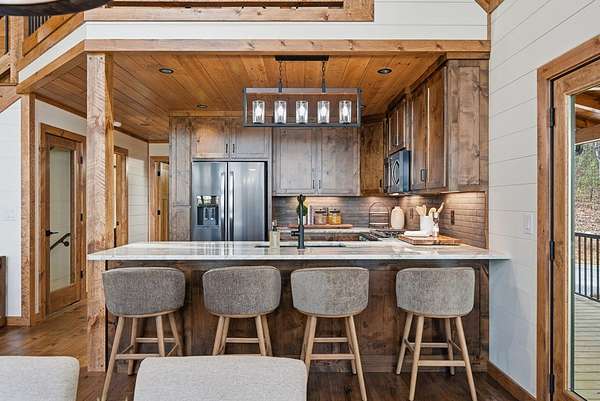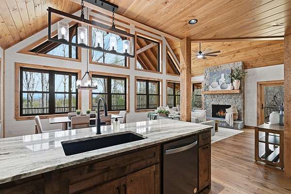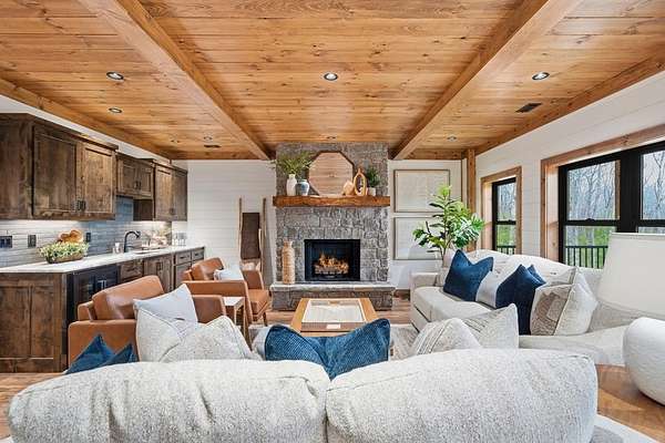 Tucked behind a private gate with no other home in sight, this brand-new mountain retreat invites you to slow down and soak in year-round, extended long-range views from the moment you arrive, with a wide gravel driveway, beautiful landscaping, and the promise of peaceful living surrounded by nature. Offering unmatched craftsmanship, the home boasts a chef's kitchen featuring a Whirlpool black stainless steel appliance suite with a gas oven/range and a flat griddle for easy entertaining. Step outside to a wraparound deck where mountain air and a wood-burning fireplace create the perfect setting for morning coffee or evenings under the stars, while a second deck on the lower level expands your outdoor living space. The thoughtful layout offers privacy for everyone with a main-level bed and bath suite, an additional upstairs suite, and a third bedroom and bath downstairs, plus a finished basement bonus room complete with its own fireplace and an oversized wet bar that's ready for game days, movie nights, or hosting guests. Practical features like a main floor laundry closet, tankless electric water heater, buried propane tank serving the fireplaces and stove, and new construction peace of mind make this home as functional as it is beautiful. Private, yet close to town, the neighboring lots are also available and can be combined to create your own mountain estate. Whether you are searching for a full-time residence, a mountain escape, or a place to gather with friends and family, this home delivers the lifestyle you've been dreaming about! See this one FIRST!