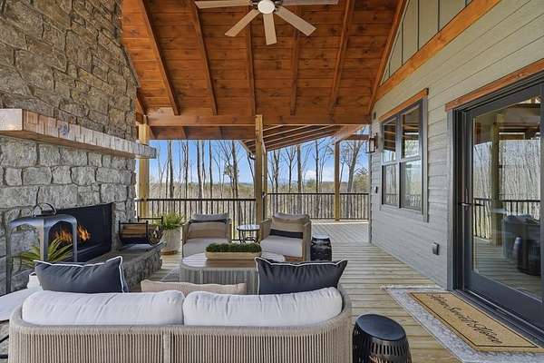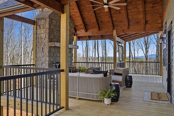 Tucked behind a private gate with no other home in sight, this brand-new mountain retreat invites you to slow down and soak in year-round, extended long-range views from the moment you arrive, with a wide gravel driveway, beautiful landscaping, and the promise of peaceful living surrounded by nature. Offering unmatched craftsmanship, the home boasts a chef's kitchen featuring a Whirlpool black stainless steel appliance suite with a gas oven/range and a flat griddle for easy entertaining. Step outside to a wraparound deck where mountain air and a wood-burning fireplace create the perfect setting for morning coffee or evenings under the stars, while a second deck on the lower level expands your outdoor living space. The thoughtful layout offers privacy for everyone with a main-level bed and bath suite, an additional upstairs suite, and a third bedroom and bath downstairs, plus a finished basement bonus room complete with its own fireplace and an oversized wet bar that's ready for game days, movie nights, or hosting guests. Practical features like a main floor laundry closet, tankless electric water heater, buried propane tank serving the fireplaces and stove, and new construction peace of mind make this home as functional as it is beautiful. Private, yet close to town, the neighboring lots are also available and can be combined to create your own mountain estate. Whether you are searching for a full-time residence, a mountain escape, or a place to gather with friends and family, this home delivers the lifestyle you've been dreaming about! See this one FIRST! Note, furnishings & decor shown are available via a separate bill of sale.