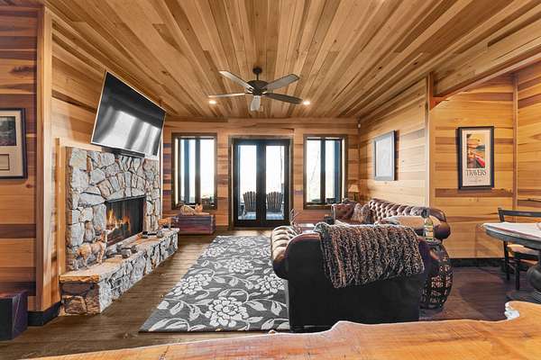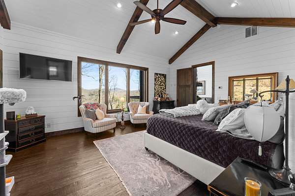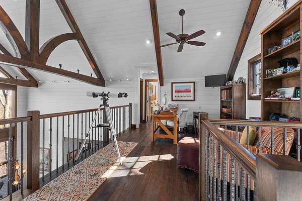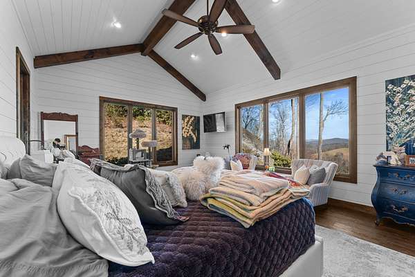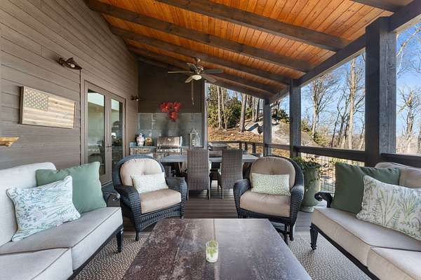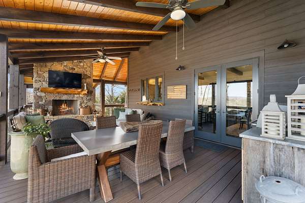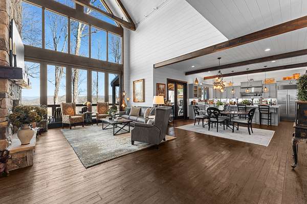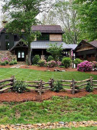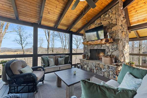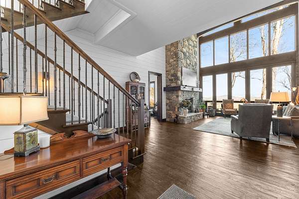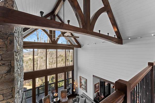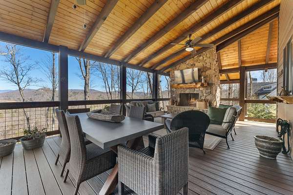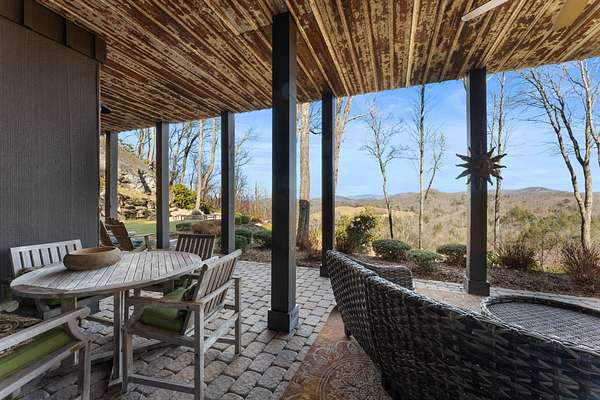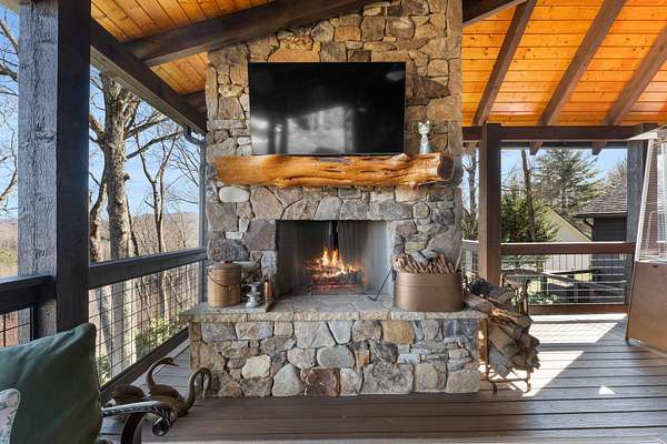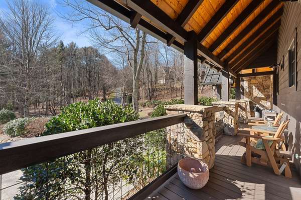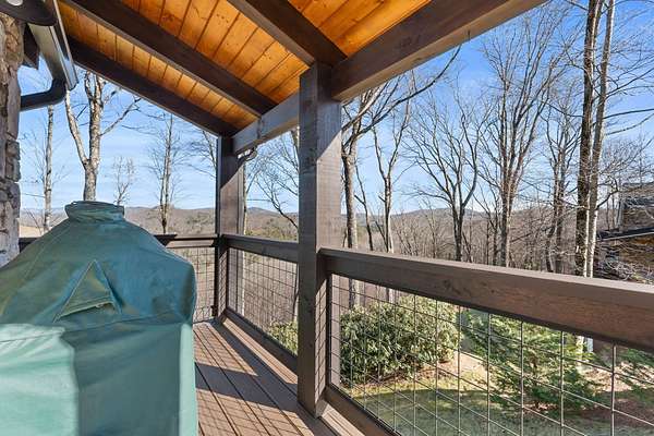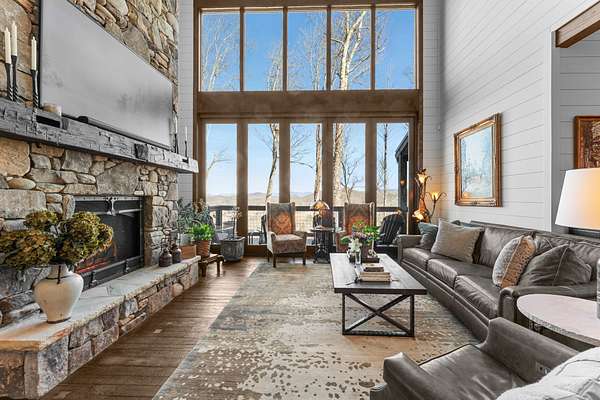 This unique house was custom-conceived, designed, and built to showcase a breathtaking view while blending the best of the Carolina Mountains lifestyle into its floor plan. Whether relaxing with family or entertaining friends, you will immediately notice the care put into every detail of the home. The house offers nearly 4,500 square feet of conditioned space and about 2,000 square feet of covered outdoor entertainment areas. It includes all the essentials, along with numerous thoughtful extras. Enjoy spacious gathering areas and four generous bedrooms, each with a full decorator bathroom. The home features include a gourmet kitchen (Wolf & Sub-Zero), an outdoor entertainment porch with a built-in Weber Sear Station gas grill plus a Big Green Egg, three large stone fireplaces, a family room with a traditional bar, walk-in storage rooms (including a "Costco" room), a walk in wine cellar, and even a recreation/fitness room that opens onto the backyard. The view is breathtaking... photos truly don't capture its beauty. Enhanced by professional landscaping, it's tempting to spend the afternoon on one of the porches, sit in the yard, by the firepit, or climb up to the Eagle's Nest lookout! This generous 2.1-acre lot is located in a quiet section of the Trillium Ridges community, close to the Fitness Center, Indoor Tennis, Pickleball, croquet, and Garden Golf course. As with all Trillium properties, your ownership includes generational privileges. While not required, Trillium Links & Lake Club Membership is available. This membership provides exceptional access to numerous amenities, including an 18-hole championship links golf course, boat rentals and activities on Lake Glenville, indoor and outdoor tennis, pickleball, croquet, a fitness center, hiking trails, kids' programs, and an on-site chapel with seasonal services. Dining options include the recently renovated Clubhouse (completed in 2023) and the spectacular new Landings lakefront facility expected to open this summer. Please note that some community amenities depend on optional membership, which may have a waitlist.