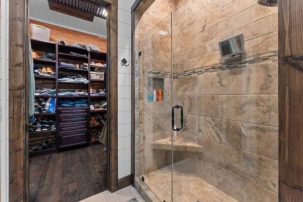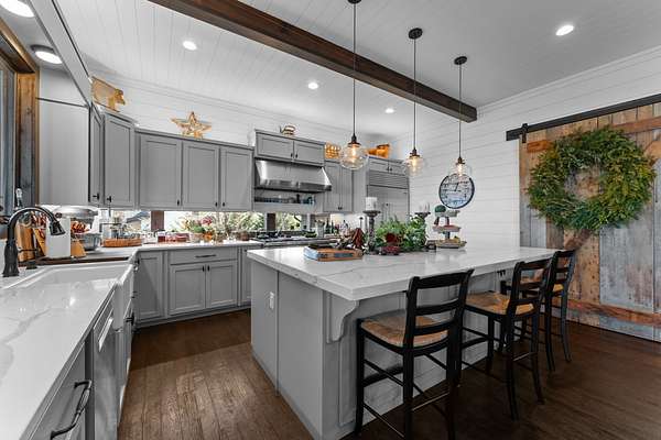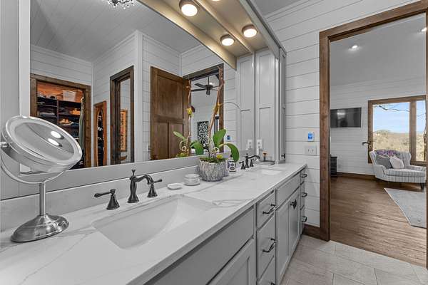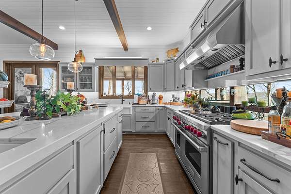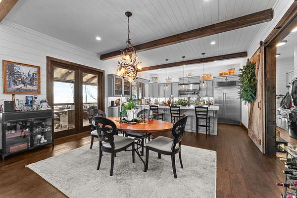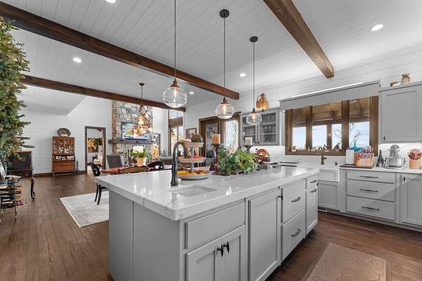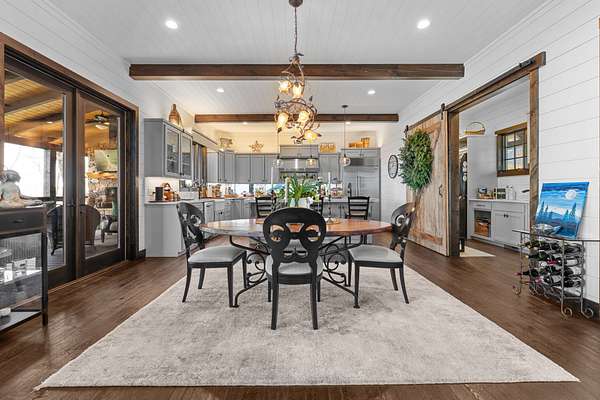 - Beamed Ceilings, Breakfast Bar, Cathedral Ceilings, Ceiling Fans, Chandelier, Double Vanity, Entrance Foyer, Garden Tub Roman Tub, Granite Counters, High Ceilings, High Speed Internet, His And Hers Closets, Kitchen Island, Multiple Closets, Open Floorplan, Pantry, Recessed Lighting, Separate Formal Dining Room, Smart Thermostat, Wet Bar