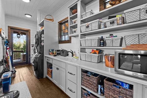 - Bar Fridge, Built In Electric Oven, Built In Range, Dishwasher, Disposal, Double Oven, Dryer, Exhaust Fan, Free Standing Freezer, Freezer, Humidifier, Ice Maker, Microwave, Range Hood, Refrigerator, Stainless Steel Appliances, Tankless Water Heater, Vented Exhaust Fan, Washer, Washer Dryer Stacked, Wine Cooler