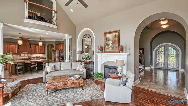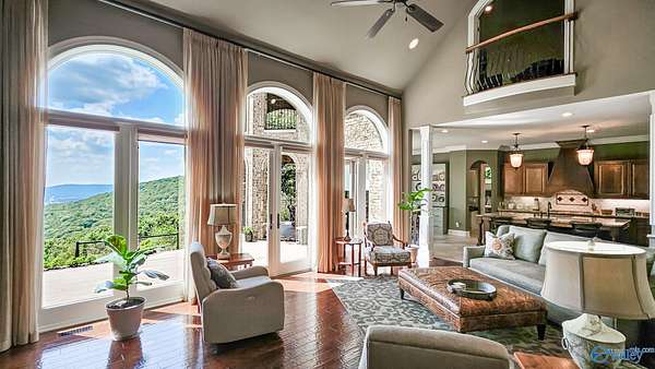 Mountain Retreat Situated on 23+/- acres and less than 25 minutes to Huntsville and 20 to Hampton Cove. This Custom Estate home overlooking the cove has UNBELIVABLE views!!From the moment you make the turn up the picturesque drive you'll feel like the world stops & life begins. Step inside to see true craftsmanship and multiple living areas showcasing true craftsmanship. A Grand Foyer,Curved Staircase,Multiple Arches,Cathedral, Barrel, Coffered & Vaulted Ceilings and a kitchen that will wow the most discriminating cook!From every window a glimpse of nature can be seen throughout this beautiful home and the outdoor living spaces are equally as spectacular! And, OH THAT Madison County SUNSET!!