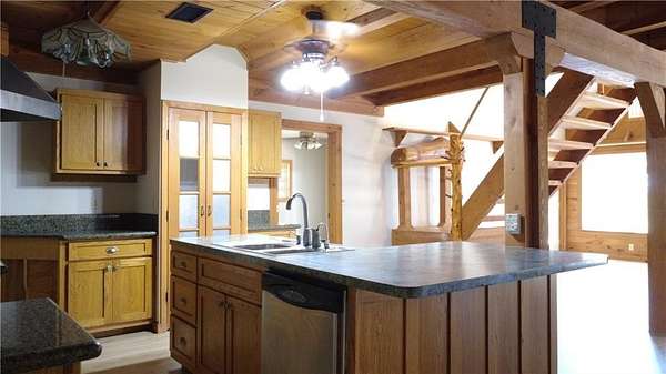 $10,000 in buyers incentives and/or closing assistance being offered for acceptable offer! Here's your opportunity to own 33 acre mountain top with spectacular views of Table Rock Lake. Quick drive down to the public boat launch is a 5 min drive to the beautiful Table Rock RV Resort. This secluded property offers a gated entrance down the tree lined private drive. Ozark rolling hills will lead home to this gorgeous 3 bedroom, 2 bath Rustic home. Inside you'll find an open floor plan, cathedral ceilings and large picture windows facing what could be an ahh inspiring view of the lake with minimal clearing. Loft area opens to a walk out porch at the upper level perfect for a home office or study. Separate shop building is on slab concrete, 54 X 24 with 3 separate rooms. An additional concrete pad has endless possibilities for additional outbuildings, raised garden or lean too for animals. Private well and no restrictions. Make a call today and fall in love with the serene seclusion tomorrow. 30 Minutes to Branson MO