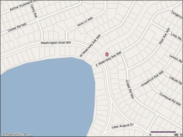 US 27 to West on Interlake Blvd to around the circle out to left on Catfish Creek Road follow past Placid Lakes Blvd to left on E Waterway Avenue NW to Washington Blvd NW corner lot on right.