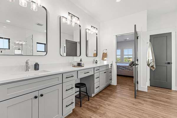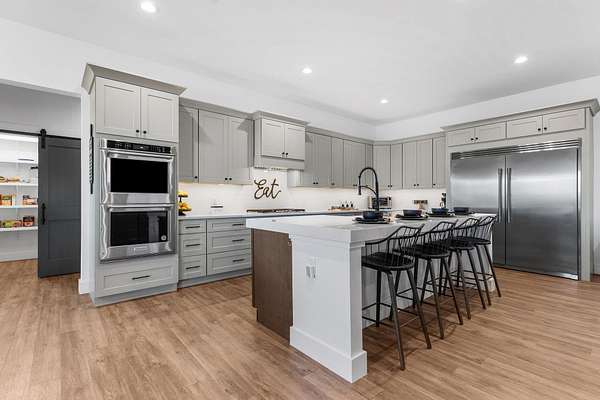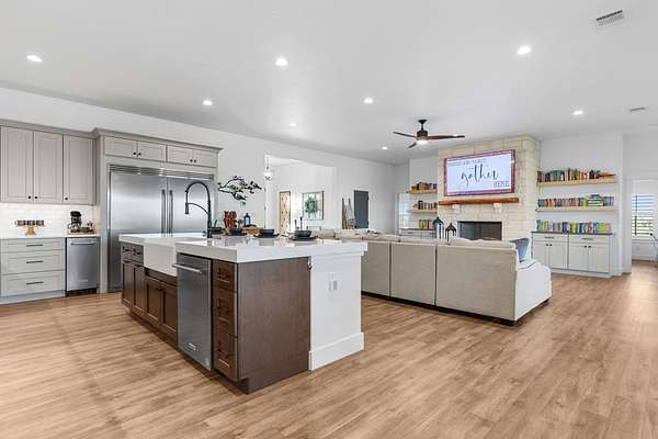 - Built-In Features, Ceiling-High, Entrance Foyer, In-Law Floorplan, Kitchen Island, Open Floorplan, Pantry, Primary Bedroom On Main, Quartz Counters, Recessed Lighting, Two Primary Baths, Walk-In Closet(s)