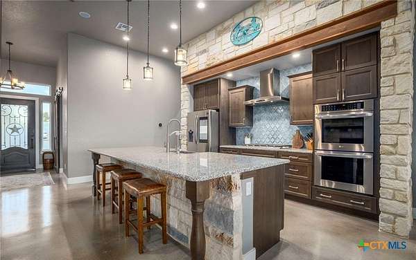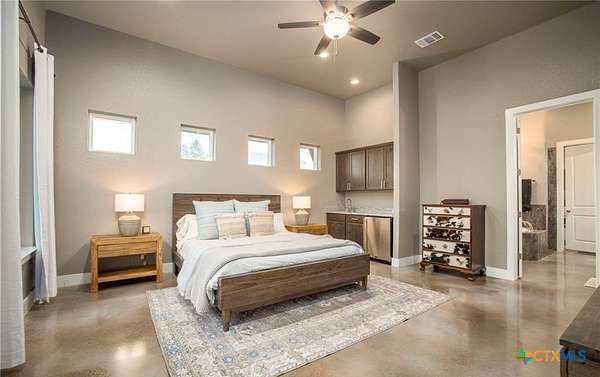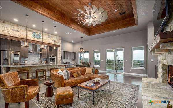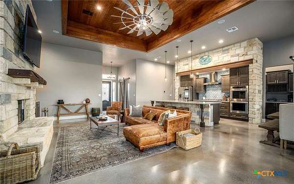 This turnkey Hill Country estate in the highly sought-after Montague Ranch Estates, just northeast of Bandera, offers a rare combination of improvements, usability, and lifestyle. Built in 2019, this 3,150+/- sqft single-story custom home features a well-designed 3 bed, 3.5 bath layout with an office, blending modern convenience with a true ranch setting. The home is equipped with smart technology throughout, including smart appliances, switches, and Cat5 wiring, while the oversized 3.5-car garage is insulated and climate-controlled. Out back, a custom pool and covered porch create the perfect setting to take in long-range Hill Country sunsets. Improvements on the property are built for both recreation and functionality, featuring a 6-stall Priefert barn with runs and tack room, a 35x35 shop with multiple roll-up doors, attached trailer storage, and a 150' x 250' lighted team roping arena. The land offers a strong mix of native habitat and usability, with a 1/2-acre pond and free-ranging wildlife including whitetail, axis, and blackbuck. Whether you're looking for a full-time residence or a weekend retreat, this property delivers a hard-to-find setup in one of Bandera's premier ranch communities.