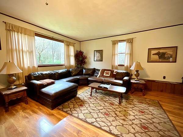 Nestled on approximately 4.3 flat scenic acres, this inviting ranch-style home offers the perfect blend of comfort, space and peaceful country living. Featuring 3 bedrooms and 2 full baths, the home provides a functional layout with both a welcoming living room and a spacious family room with a brick wood burning fireplace- idea for everyday living and entertaining. From your back porch swing enjoy the sights and sounds of nature, including turkey, squirrel, deer, birds, etc. Plenty of room for gardening, children to play or just enjoying the county views. Call today!