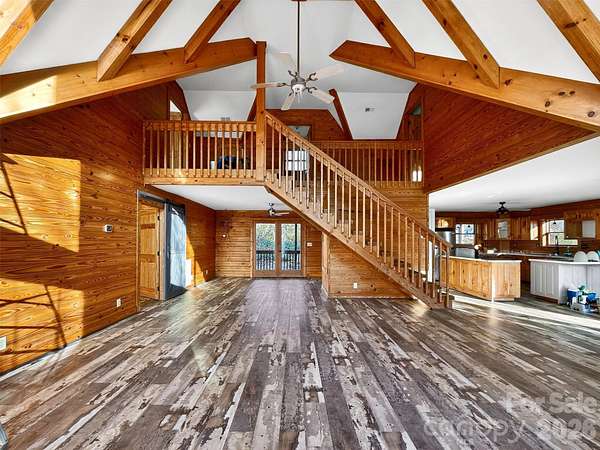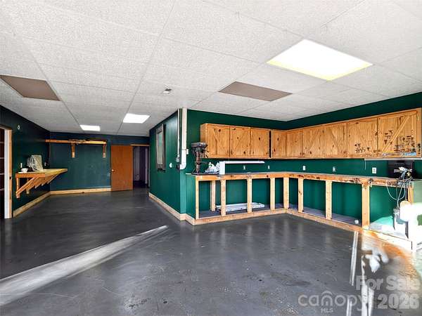 Escape to the mountains with this spacious cabin offering nearly 2,000 square feet of comfortable living space plus a full basement on 5.72 private acres. Though it's just a short distance from the community entrance you will enjoy long-range mountain views stretching as far as Crowders Mountain while relaxing on the expansive wraparound deck that surrounds the main level-perfect for entertaining or simply taking in the peaceful setting. Inside, the home features a spacious kitchen with a breakfast bar that opens to the main living area, creating a welcoming space for gathering with family and friends. Storage is abundant throughout the home, providing plenty of room for organization and hobbies. The partially finished basement adds incredible versatility, serving as a garage while also offering heated and cooled space that includes a dedicated office or craft room and an exceptional wood shop complete with a dust collection system-ideal for woodworking enthusiasts or anyone needing a serious workshop area. The cabin exterior was freshly stained in August 2025, and wood bee treatment is in place through December, offering added protection and peace of mind. With privacy, usable acreage, and stunning mountain views, this unique property combines mountain charm with practical space for work, hobbies, and everyday living.
