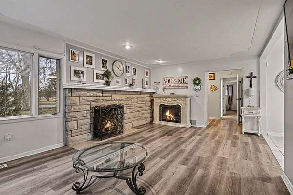 Cameras present.... Hunter's Paradise + Pristine Move-In-Ready Ranch on 4.24 Private Acres in Quincy Township! Immaculate 3-bed, 2-bath brick ranch bursting with charm and big-ticket updates throughout. Gorgeous oak kitchen, dual wood-burning fireplaces in living & family rooms, and a master suite with 3-season room + hot tub overlooking your own hunting retreat. Perfect setup for serious deer hunters: 4.24 acres of open ground with scattered mature trees, thick brush pockets, and food-plot potential. This neighborhood consistently produces monster bucks trophy whitetails have been taken just steps from the back door! Meticulously maintained such as furnace, central air, electrical, plumbing, and septic line. Spotless and truly move-in ready! Seller will provide repair escrow at closing for minor brick work (professional quote available). The ultimate combo: turn-key home + proven big-buck acreage. Schedule your private showing today!