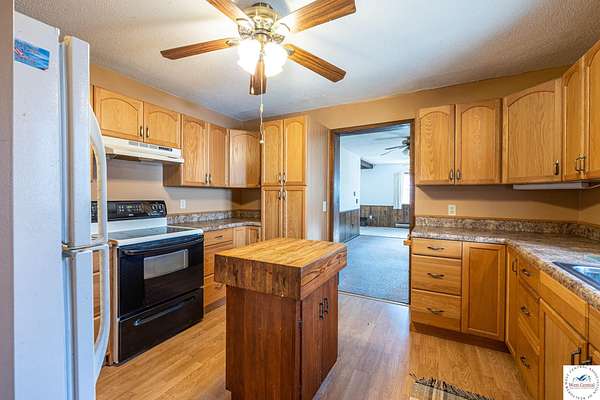 - Built-In Dishwasher, Cabinets Wood, Electric Oven/Range, Pantry, Vent Fan