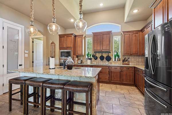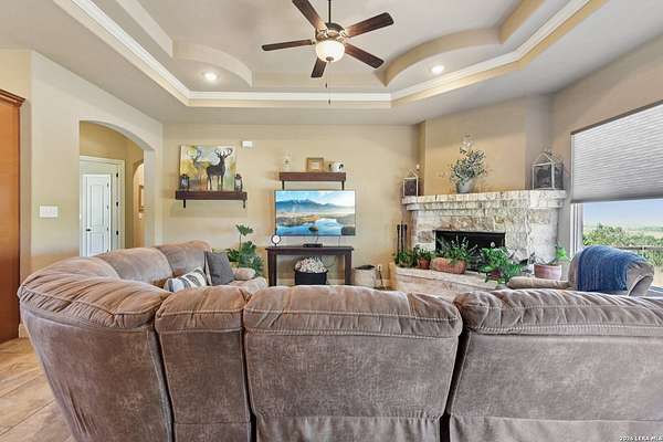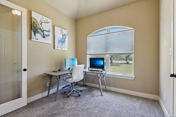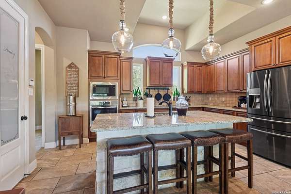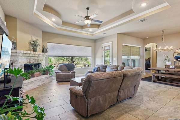 Experience true Hill Country living in the highly sought-after Mystic Shores community near Canyon Lake, where space, privacy, and breathtaking views come together on this exceptional 3-acre property. Built in 2020 by Everview Homes, this custom single-story residence offers 2,283 square feet, 4 bedrooms, 2 bathrooms, and a thoughtfully designed split floorplan that balances open living with private retreats. One secondary bedroom offers flexibility as a dedicated office, making this home ideal for remote work or multi-purpose living. From the moment you enter, you're welcomed by expansive Hill Country views, high ceilings, and abundant natural light. The open-concept design seamlessly connects the kitchen, dining, and living spaces, creating an inviting environment perfect for entertaining or everyday comfort. The kitchen serves as the heart of the home and features: * Large center island * Granite countertops * Custom cabinetry * Stainless appliances * Generous prep space * Open sightlines into living and dining areas The primary suite is a true retreat, featuring tray ceilings, peaceful views, and a spacious layout designed for comfort. The spa-inspired ensuite bathroom includes a soaking tub, oversized walk-in shower, dual vanities, and an impressive walk-in closet designed for maximum organization. Additional interior highlights include: * Beautiful tile flooring in main living areas * Upgraded carpet in bedrooms * Split bedroom layout for privacy * Custom finishes throughout * Large windows showcasing Hill Country scenery Step outside and the lifestyle really begins. The property features a covered back patio and an extended deck designed to capture the incredible Hill Country sunsets and panoramic views. With three acres, there is plenty of room for future additions such as a pool, workshop, or additional outdoor living spaces. Located in Mystic Shores, residents enjoy some of the best amenities in the Canyon Lake area including: * Private boat ramp access to Canyon Lake * Community lake park access * Pool and clubhouse * Playground and park areas * Walking and biking trails * Community events and activities The home is located in award-winning Comal ISD and offers convenient access to FM 306, Highway 281, shopping, dining, and Canyon Lake recreation. This property offers a rare opportunity to own a newer custom home on acreage with lake access, Hill Country views, and one of the most desirable communities in the area. Schedule your private showing and experience the Hill Country lifestyle this home delivers. Mystic Shores home for sale, Canyon Lake home with acreage, Hill Country home for sale, 3 acre property Texas, Canyon Lake boat ramp access, custom home Canyon Lake, Everview Homes, one story home Texas, Hill Country views home, Comal ISD home for sale, Canyon Lake real estate, acreage home San Antonio area, split floorplan home, granite kitchen home, open concept home Texas, covered patio Hill Country, Canyon Lake community amenities, Texas Hill Country real estate, move in ready acreage home.