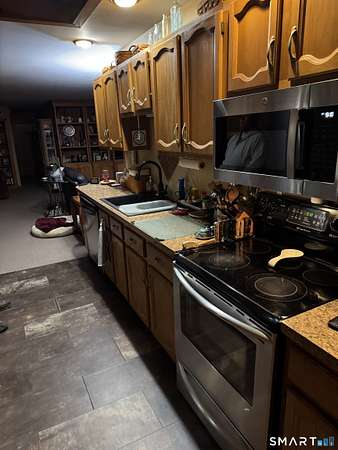 Spacious contemporary home offering 5,246 sq ft of living space on a private 1.78-acre lot. This property features 5 bedrooms and 4 bathrooms, providing ample room for extended living or multi-generational use. With two kitchens already in place, the layout offers flexibility for customization or potential in-law arrangements. Built in 1970, the home retains its unique contemporary character and is ready for a full cosmetic renovation. All bathrooms and kitchens will require updating, presenting a great opportunity for investors or buyers looking to create their dream home. Major improvements include a roof less than 10 years old and a newer hot water tank. The furnace is older and will likely need replacement. Property is serviced by well and septic. Oil tank is located underground. Set on a generous lot with a gravel driveway, this home offers privacy and potential in a desirable setting. Ideal for those seeking a renovation project with strong upside. Sale dependent upon the contract owner's ability to take title.