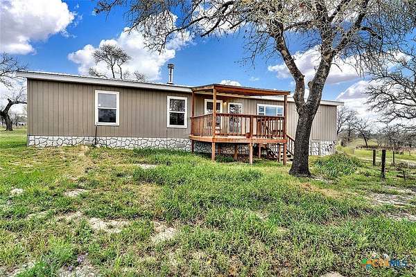 This private park like setting features a 17 acre property is a must see! Includes water well with cistern & hand pump, covered in Post Oaks, fully fenced, and outbuildings. Upgraded manufactured home features an island kitchen with great countertop and cabinet space, fireplace in the family room, an office and a nice covered back patio to overlook all your acreage! Great location between US Hwy 123 and FM 539, making it an easy trip to Seguin, Stockdale or La Vernia!