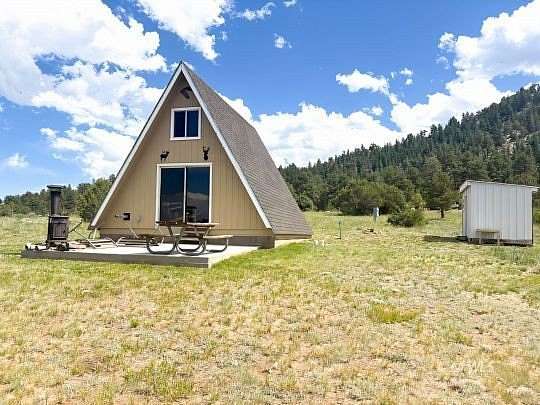 Dreaming of a mountain escape with views that wow? This remodeled A-Frame retreat delivers! Nestled on over 5 acres with sweeping views of the Sangre de Cristo Mountains and Pikes Peak, this cozy one-bedroom + loft cabin is your serene getaway in the woods. The seller is currently adding a brand-new shower, making your half-bath even more functional! Inside, the warm, open layout features a charming pellet stove, kitchenette, and dining nook, perfect for chilly evenings or weekend getaways. An electric heater keeps the bedroom and bath toasty, while the loft above offers extra sleeping or hangout space (yes, you can stand up!). Step through sliding glass doors onto your deck, pick your view, and fire up the BBQ! With just a few neighbors on this quiet, scenic road, it's peace, nature, and starry skies galore. On-grid power, stove hook-up, and furnishings negotiable. Whether you're sipping coffee with the birds or hosting a mountain cookout. This A-Frame is calling!