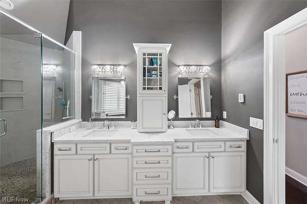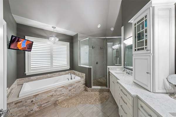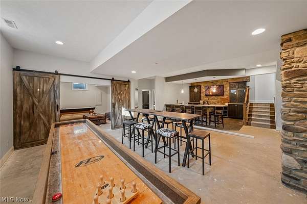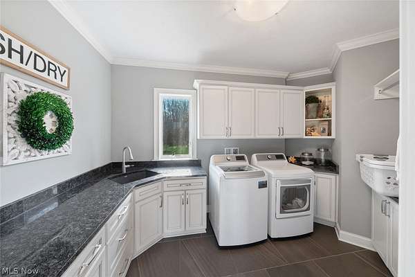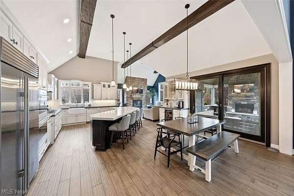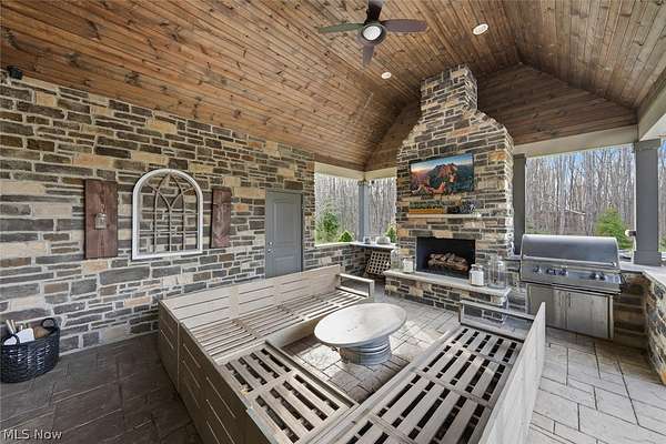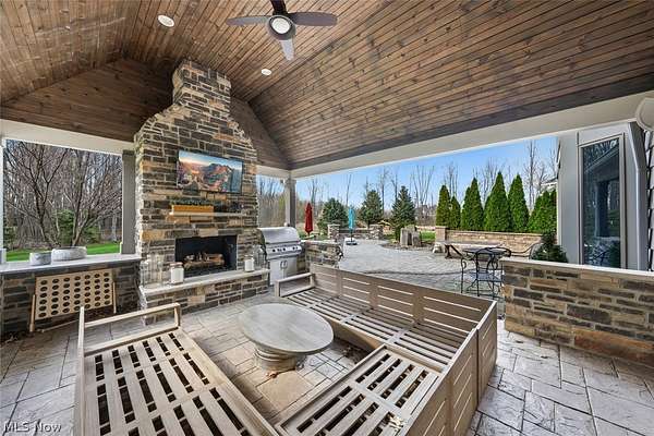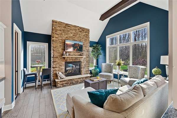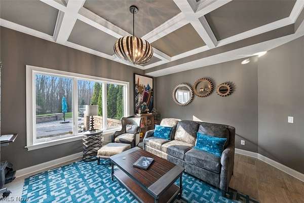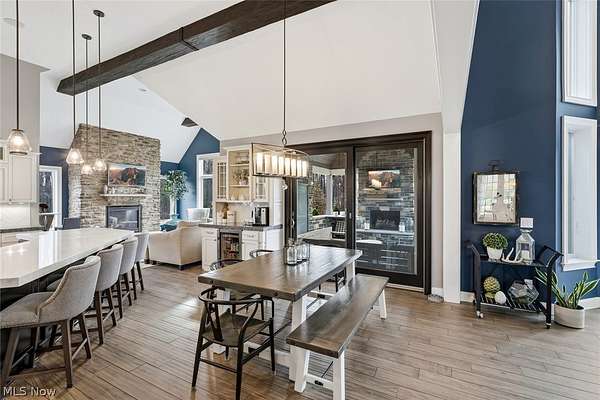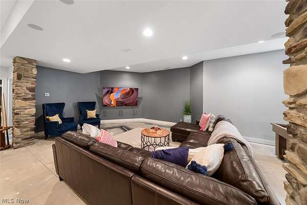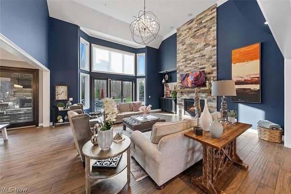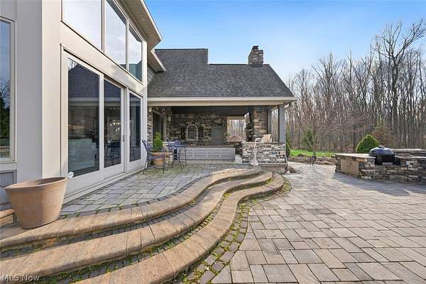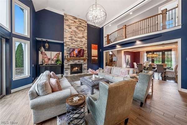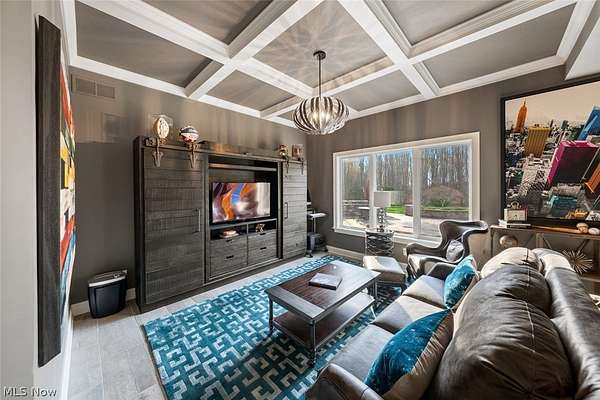 Welcome to this exceptional estate situated on 3 private acres in the heart of Avon. This custom home offers luxury living with a thoughtfully designed open floor plan and high-end finishes throughout. The chef's kitchen is a true showpiece, featuring premium appliances, dual dishwashers, heated floors, and a temperature-controlled wine cellar conveniently located just off the kitchen perfect for entertaining. Beautiful exposed wood beams extend from the kitchen into the living room, adding warmth and architectural character to the space. The first-floor owner's suite provides a private retreat with heated bathroom floors, dual vanities, a spacious walk-in shower, spa tub, and a custom walk-in closet complete with built-ins and its own washer and dryer. The main level also includes a large laundry room and a functional mudroom with built-in storage. Elegant coffered ceilings enhance both the formal dining room and private study, adding timeless sophistication. Upstairs, you'll find three generously sized bedrooms, each with its own full bathroom, along with a private bonus space ideal for a playroom or family lounge. A dedicated, oversized workout room with rubber flooring completes the second level. The fully finished basement is designed for entertaining, offering a full bar/kitchen, an additional bedroom, and a full bathroom perfect for guests or extended living. Step outside to enjoy the covered patio with a fireplace and beautifully landscaped outdoor living space, ideal for year-round enjoyment. This home offers countless upgrades and exceptional details throughout?please refer to the attached supplements for a full list of features.